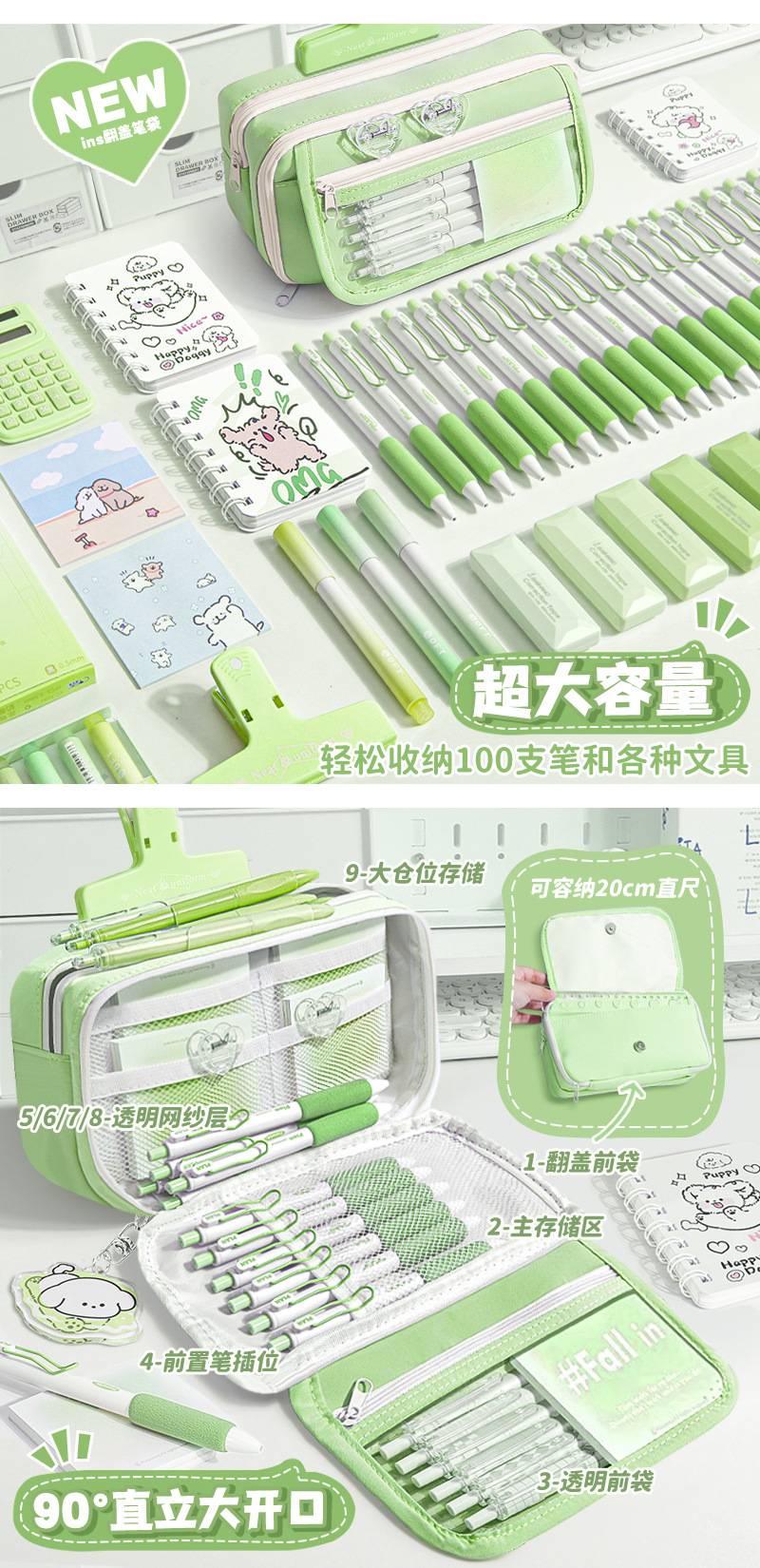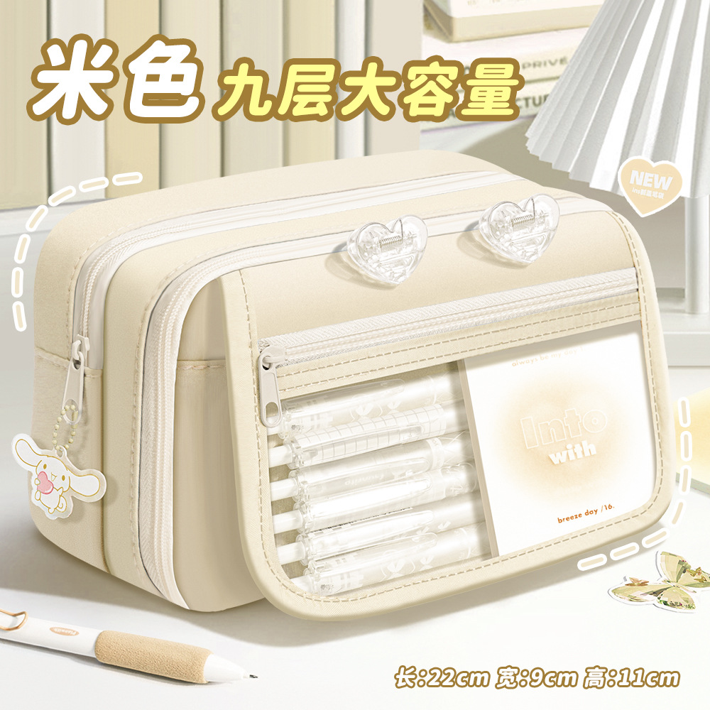 9단 필통, 투명 플립 커버, 대용량 여아 문구 가방, 남아 필통, 중고등학교 고급스러운 통가방