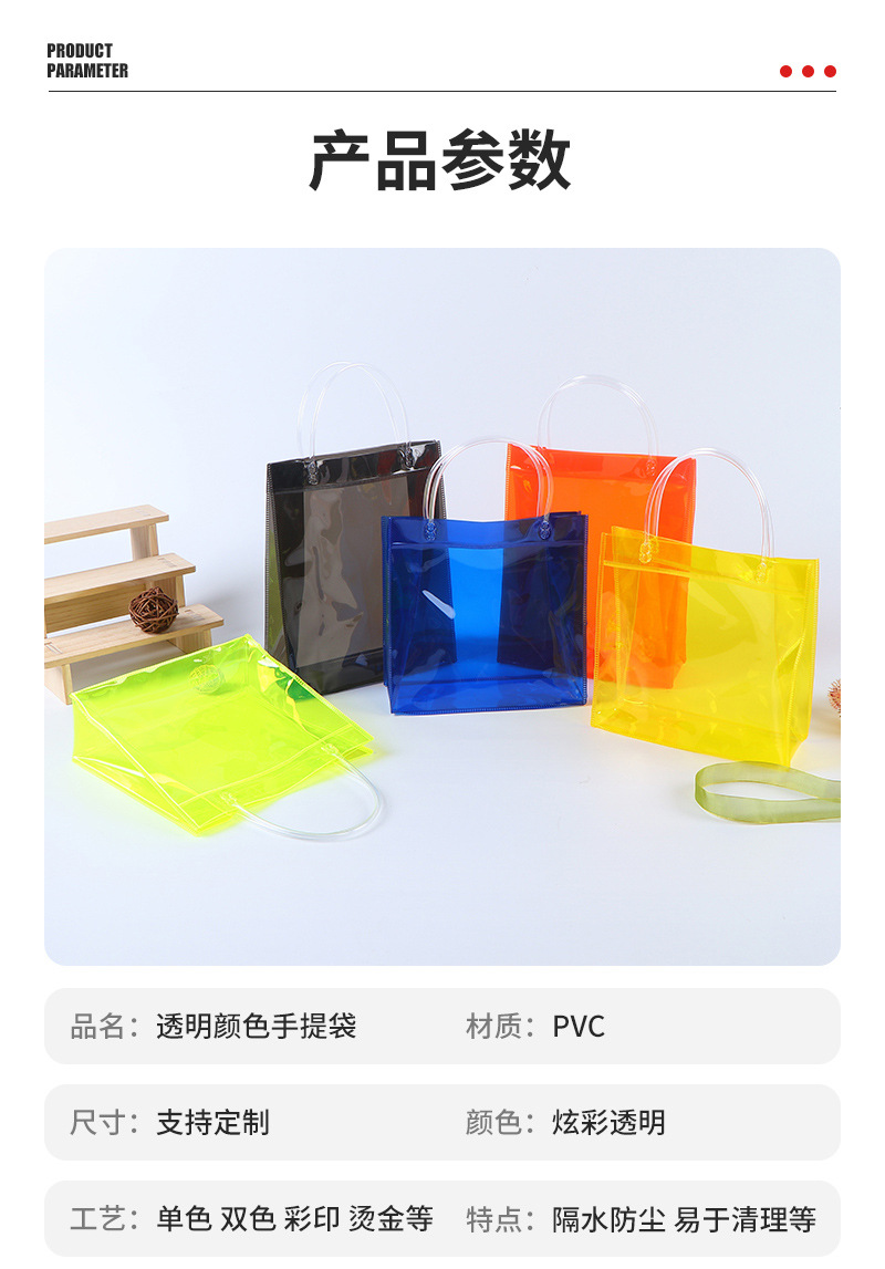 PVC 투명 컬러 핸드백 반투명 웨딩 캔디 핸드백 고급 휴일 기념품 도매 가능스토어 가기