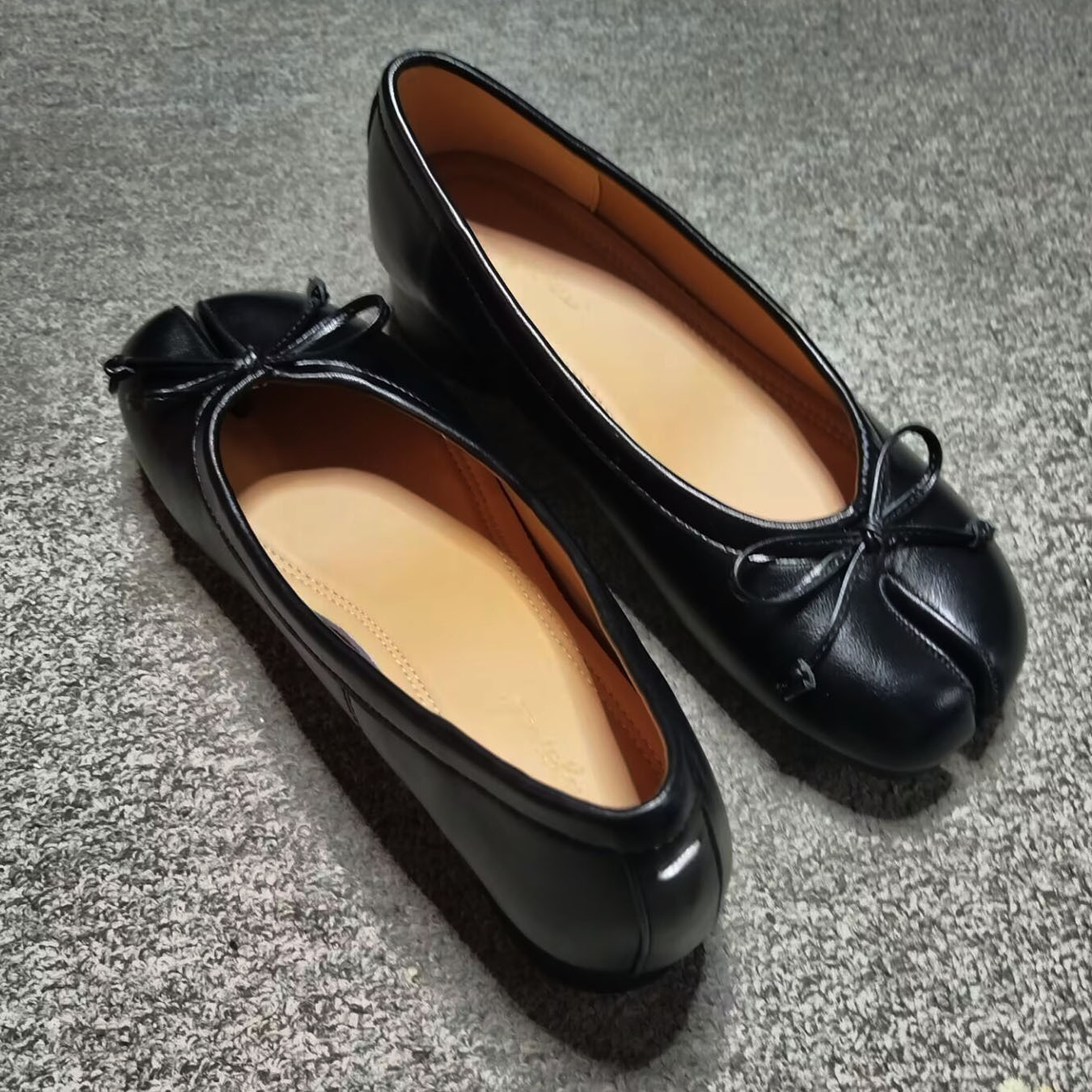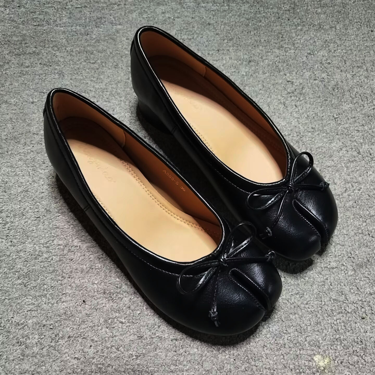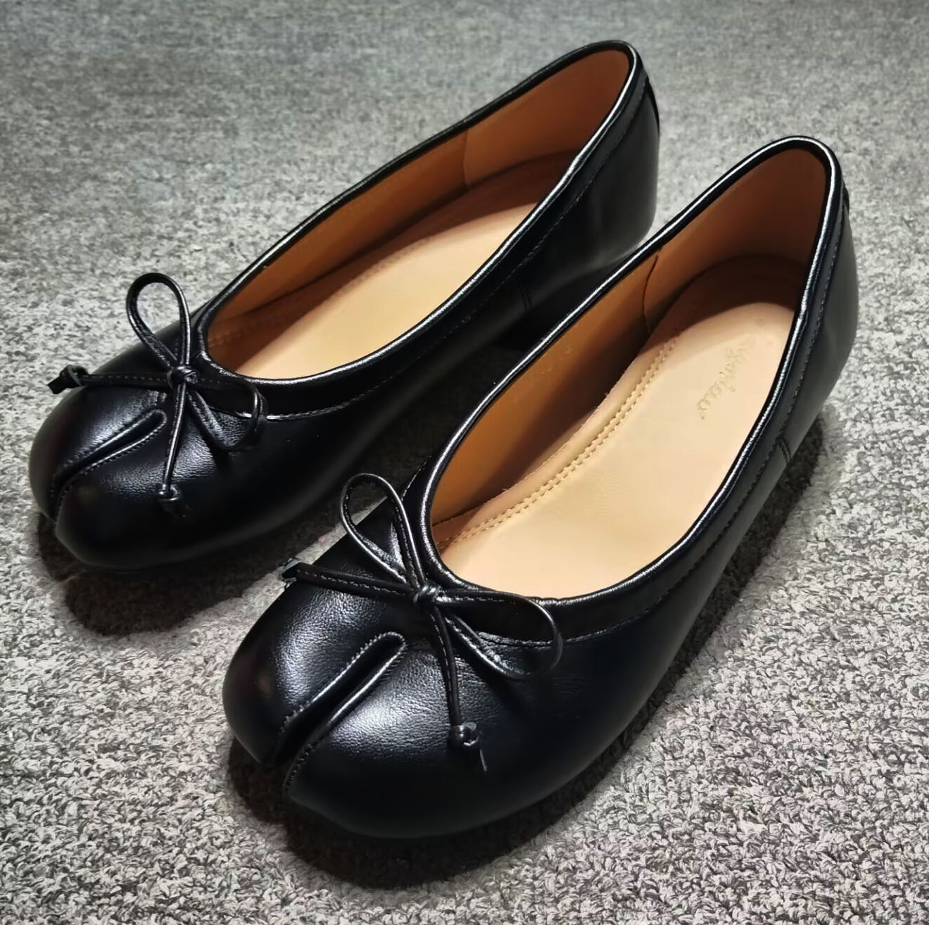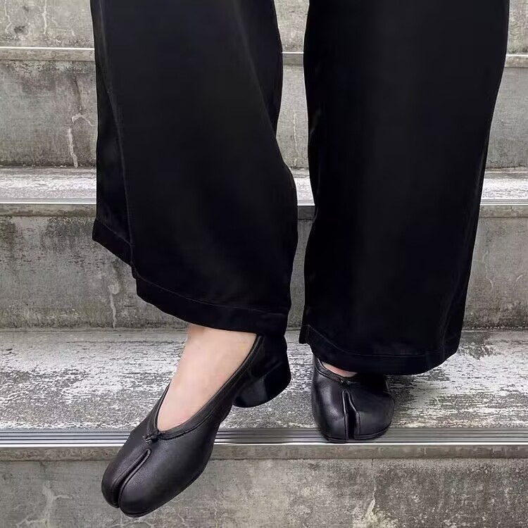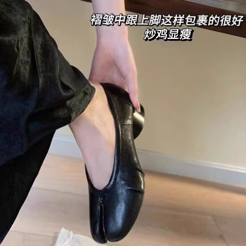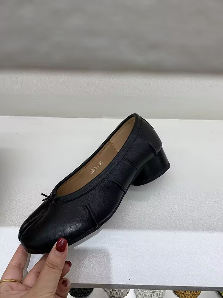 여성용 스플릿 토 슈즈 2025 새로운 스타일 다용도 복고풍 패션 말굽 돼지발톱 신발 얕은 굽 중간 굽 나비 매듭 신발스토어 가기