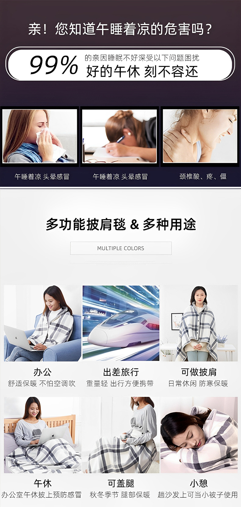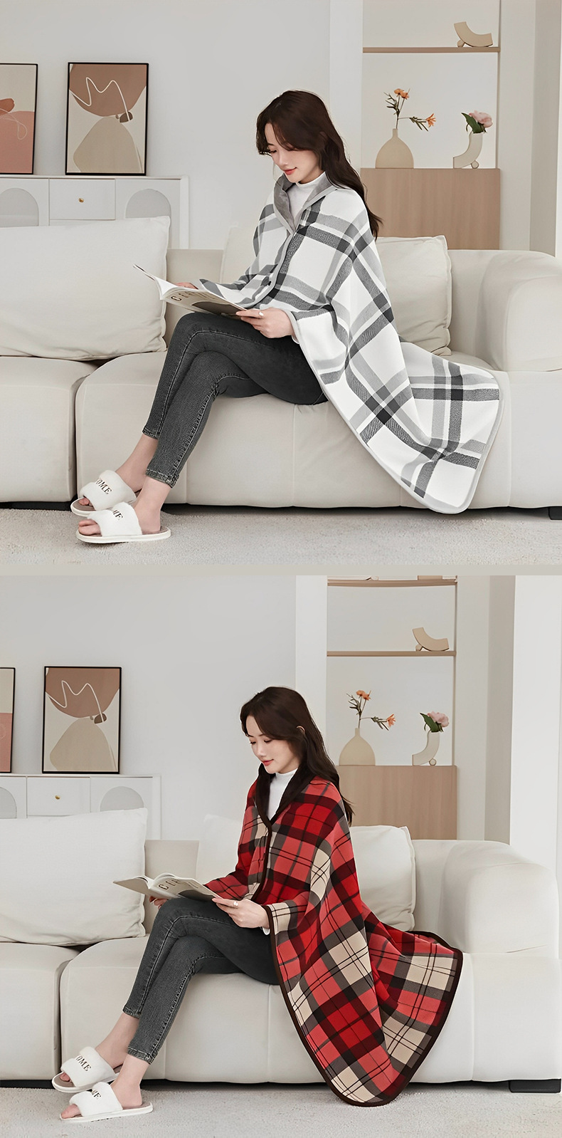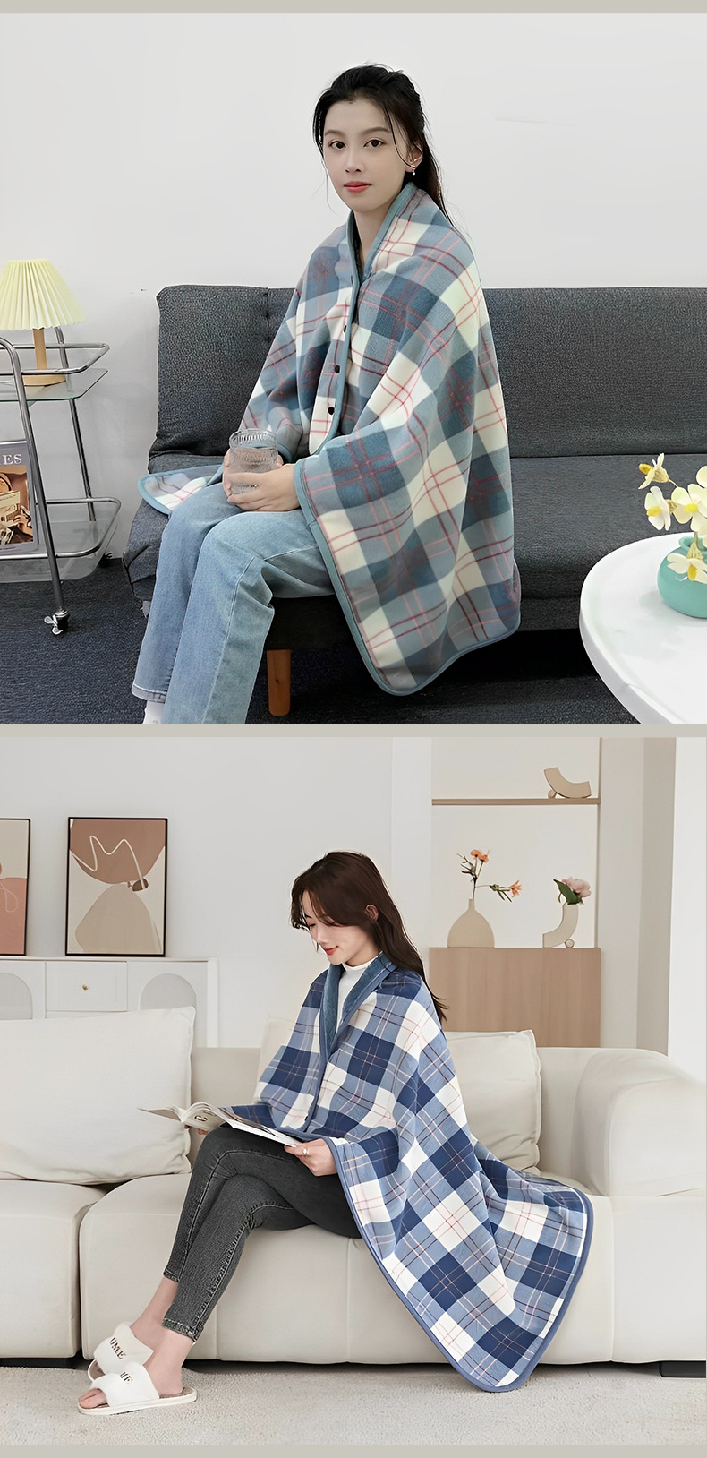 가을 겨울 버클형 다기능 숄 담요 두꺼운 보온 이중 담요 커버 담요 사무실 낮잠용 폴라 플리스 숄 담요스토어 가기
