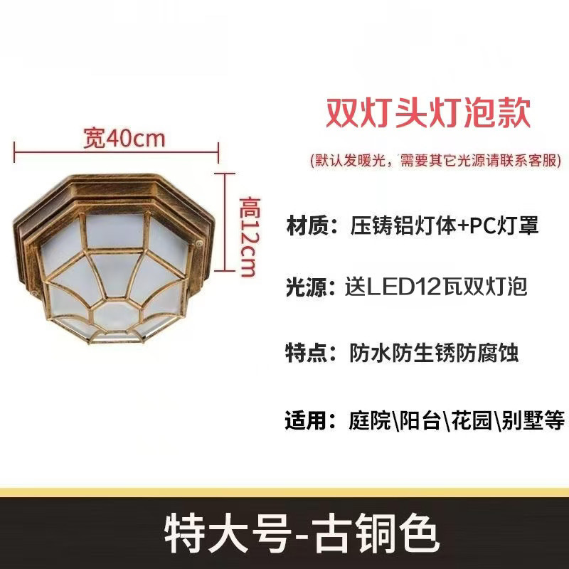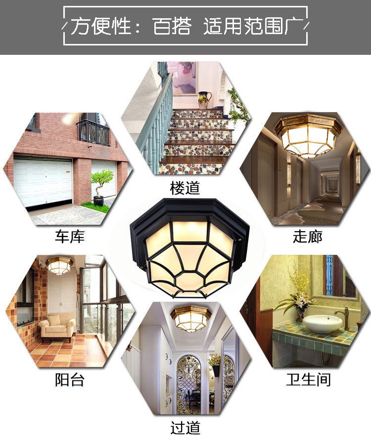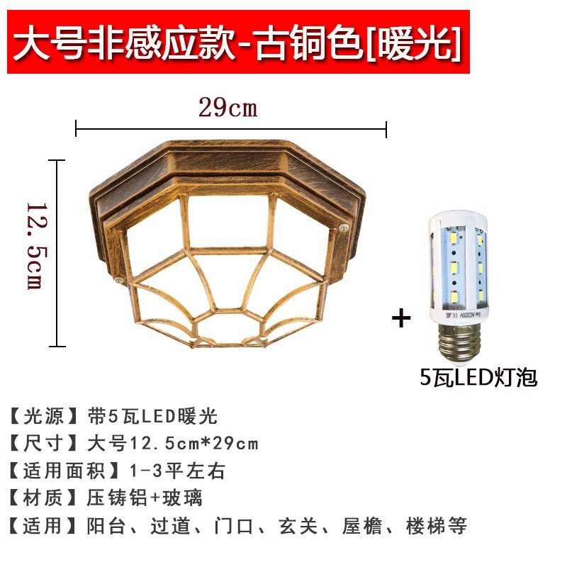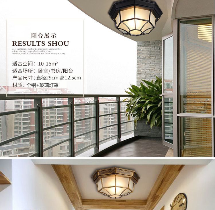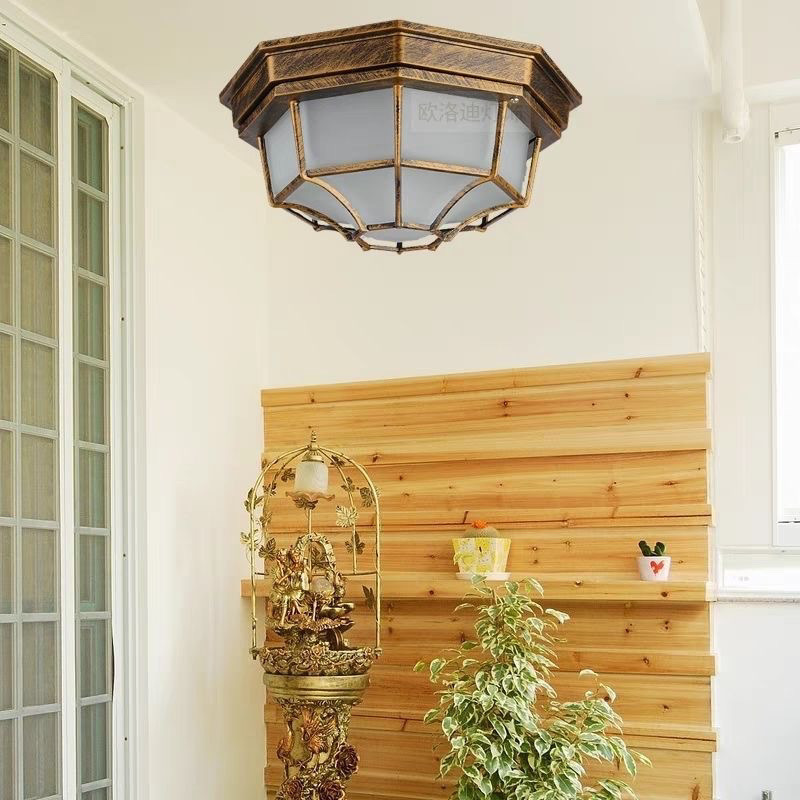 야외 천장 조명, 로비 입구 조명, 야외 천장 조명, 발코니 복도, 유럽식 복고풍 방수 및 방습 팔각형 조명