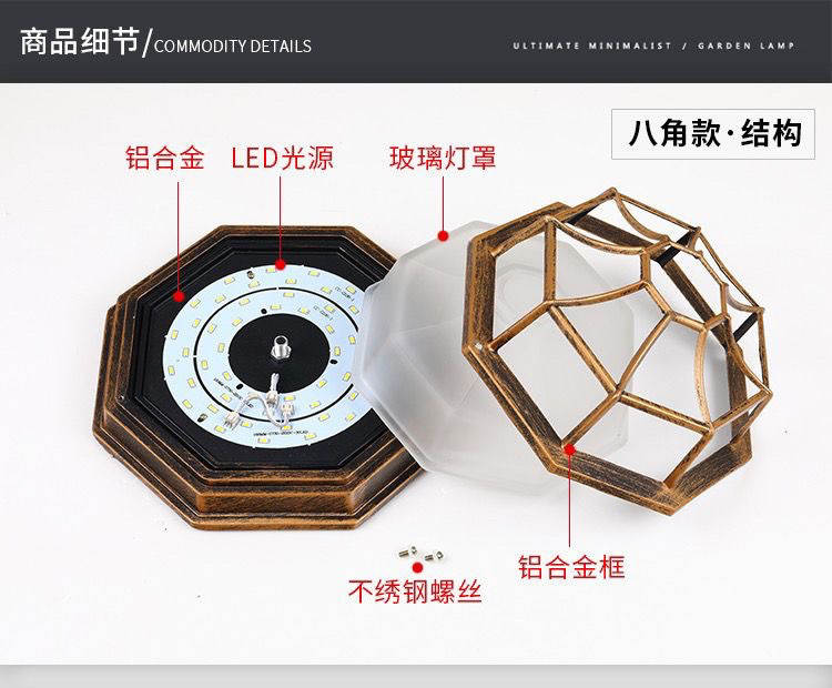 야외 천장 조명, 로비 입구 조명, 야외 천장 조명, 발코니 복도, 유럽식 복고풍 방수 및 방습 팔각형 조명스토어 가기