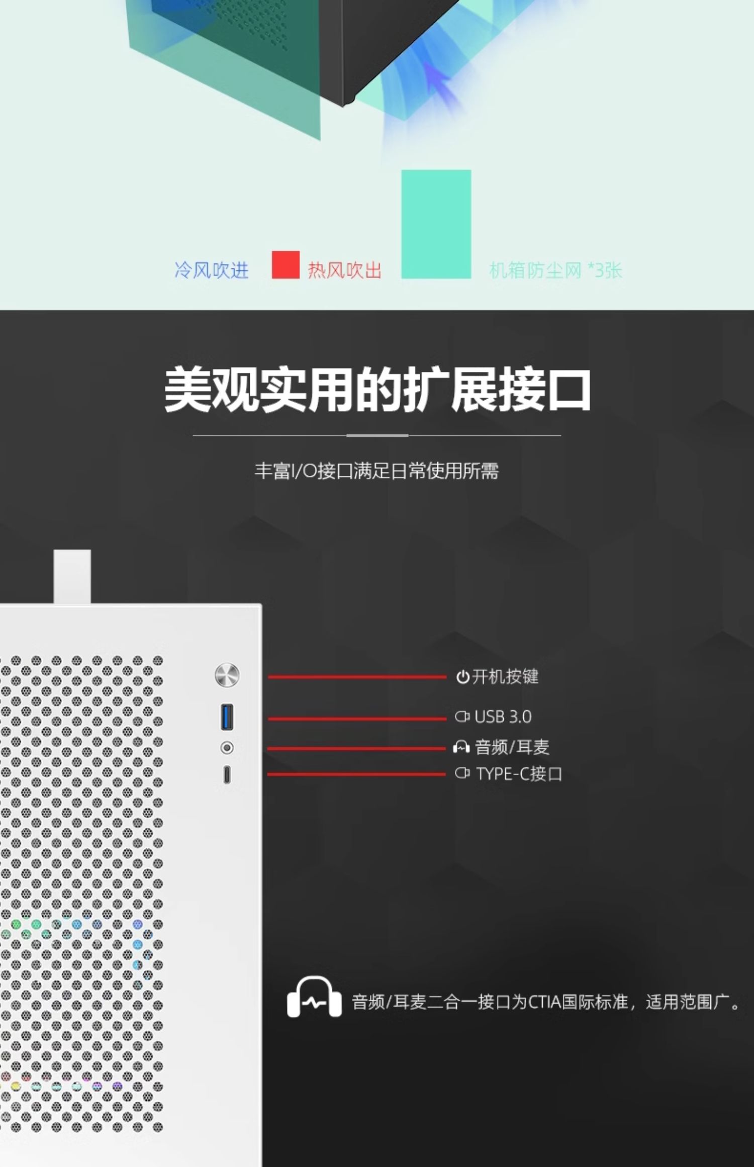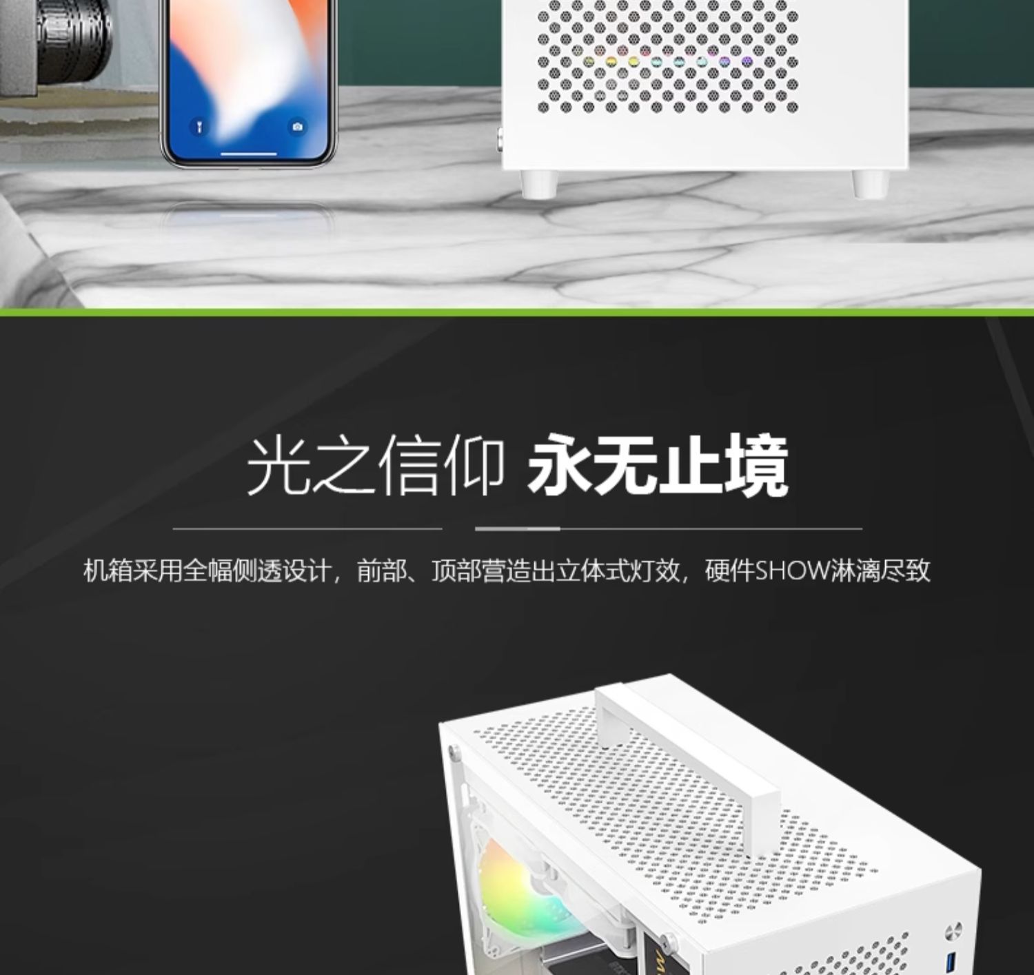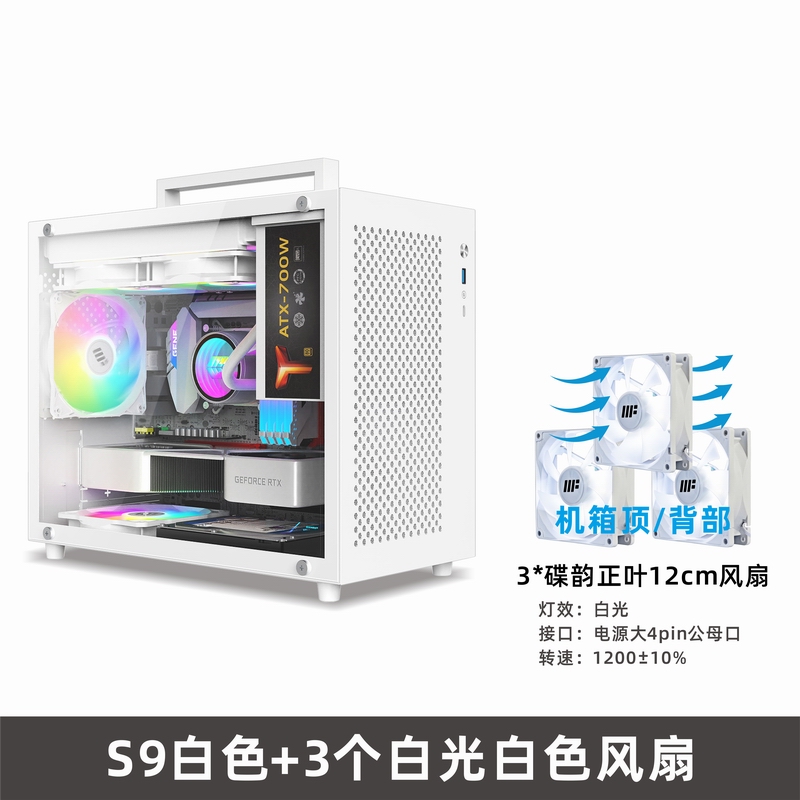 • S9 흰색 섀시 + 3개의 환상 ARGB 팬