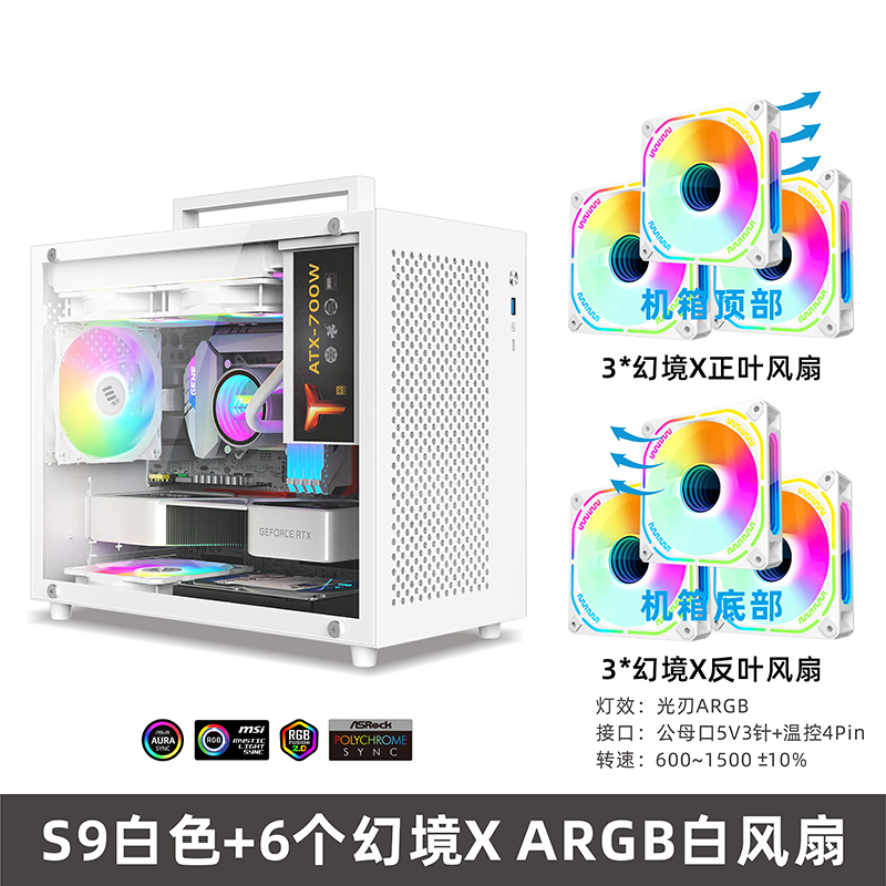 • S9 흰색 섀시 + 6개의 환상 ARGB 팬