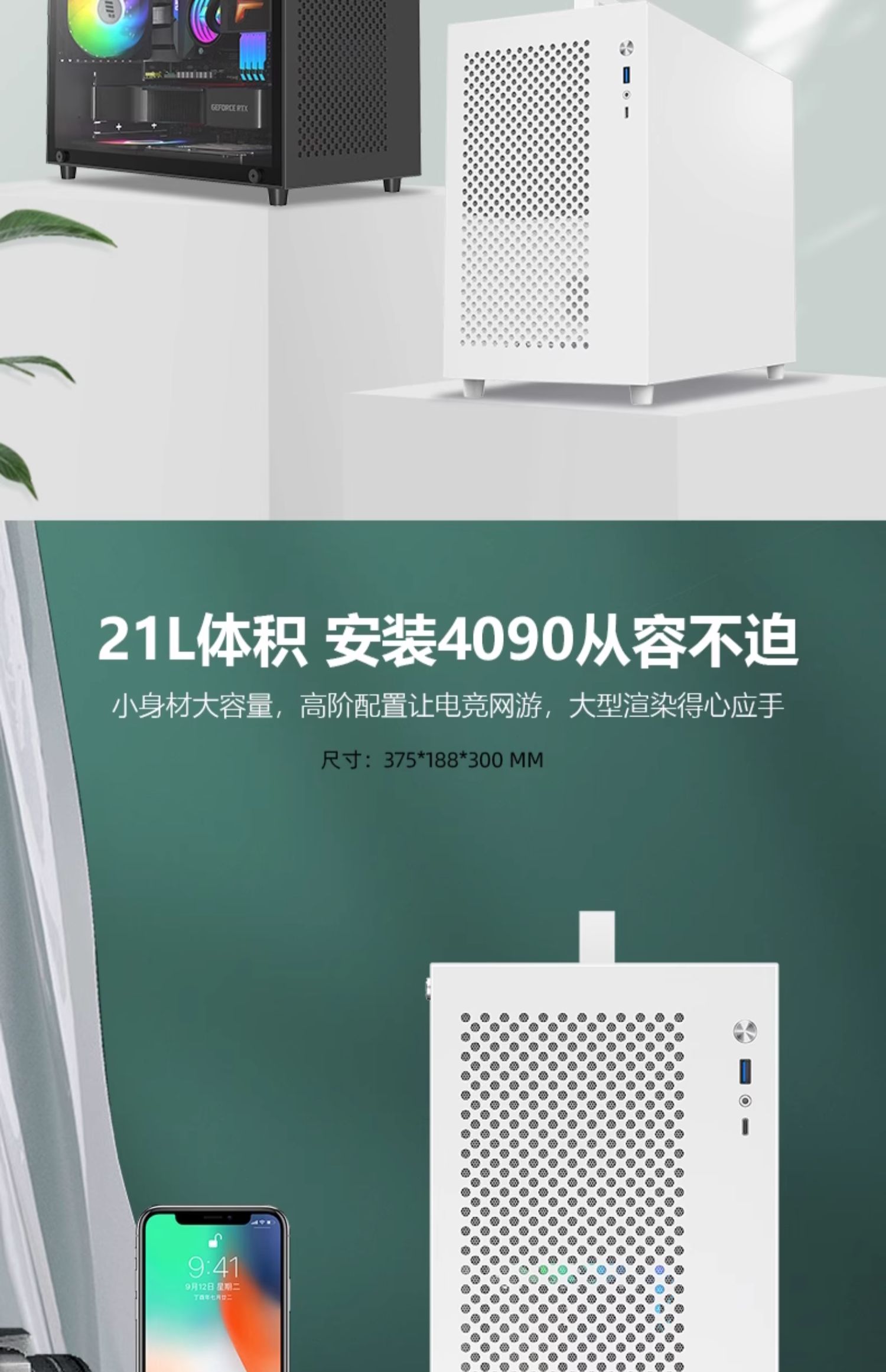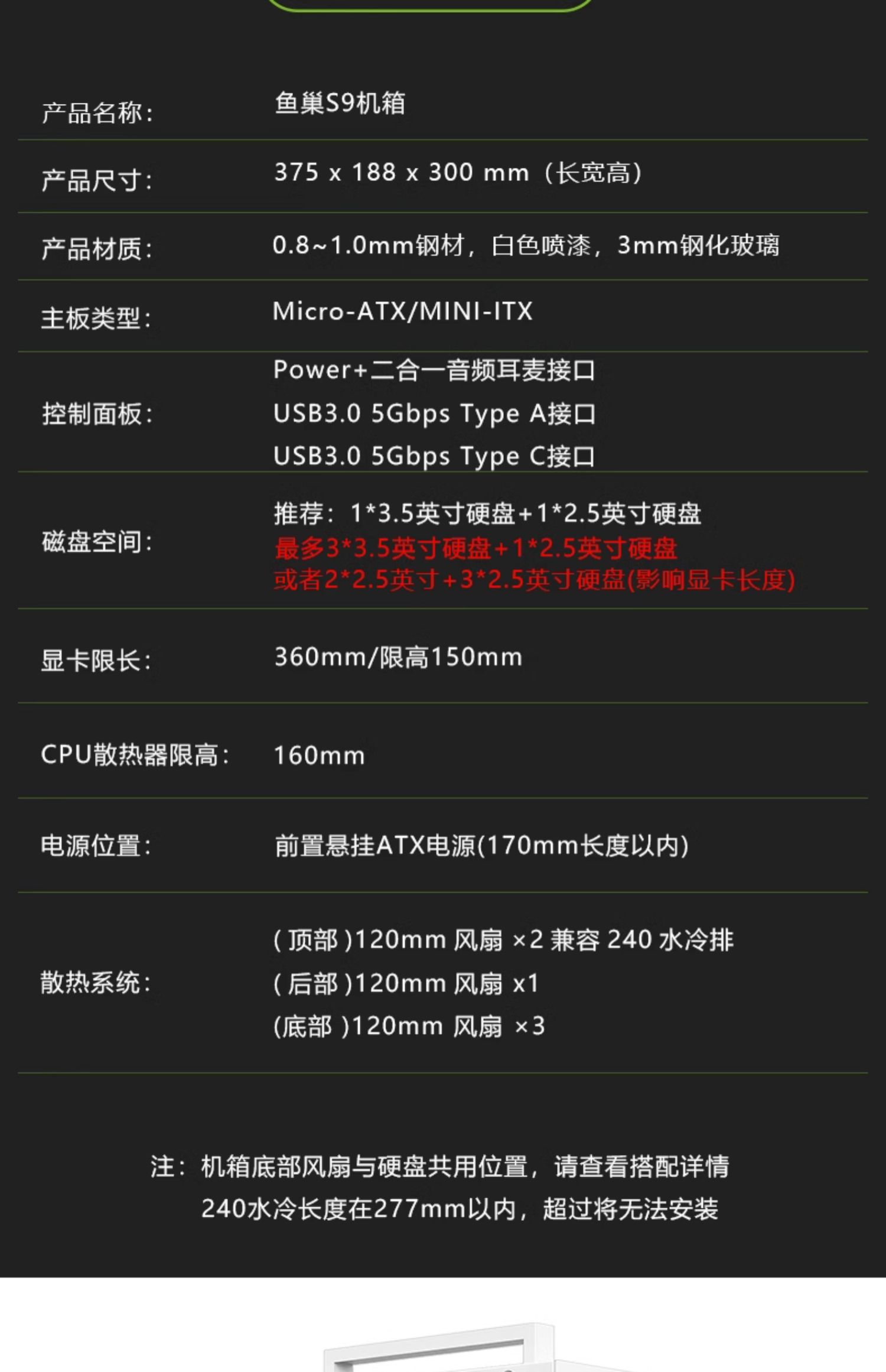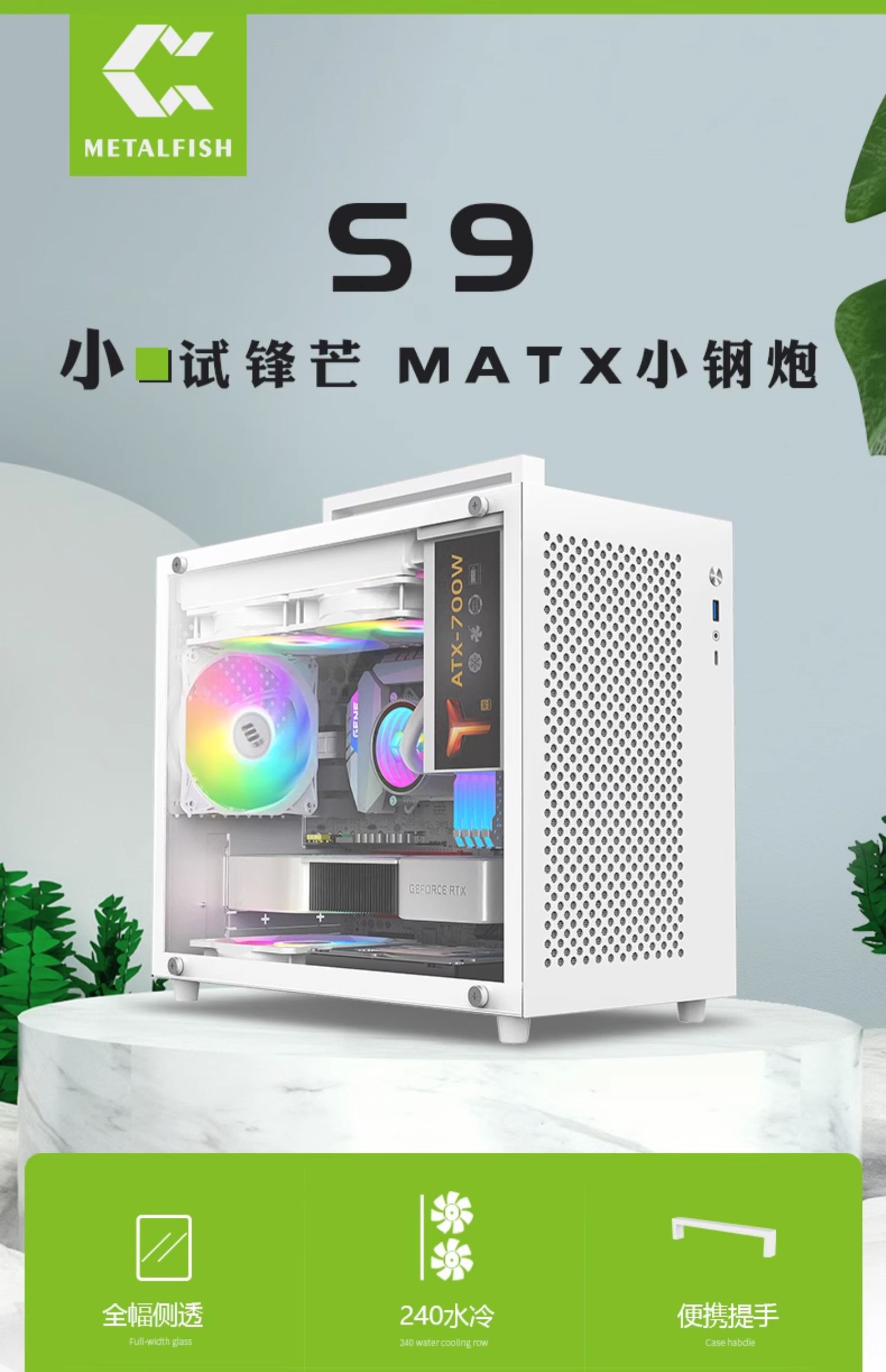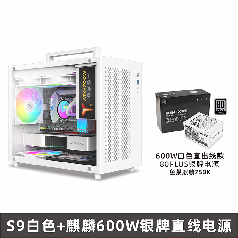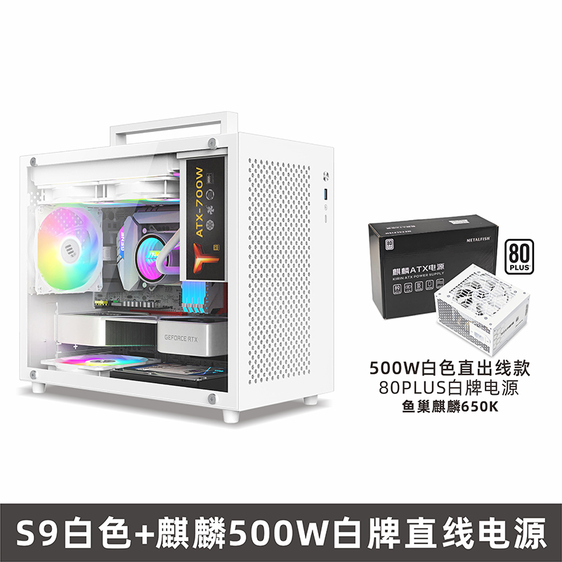 Fish Nest S9 섀시 M-ATX 컴퓨터 데스크탑 빈 메인 섀시 흰색 240 수냉식 측면 투명 휴대용 미니 데스크탑스토어 가기