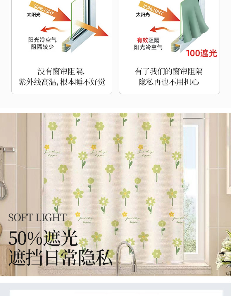 펀치없는 반 차광 커튼 2025 새로운 욕실 작은 창 간단한 교수형 링 차단 천 욕실 임대실스토어 가기