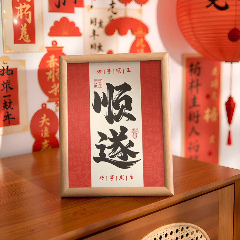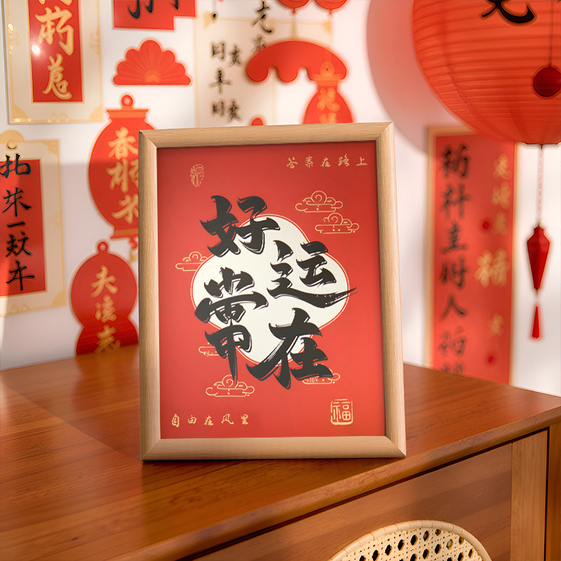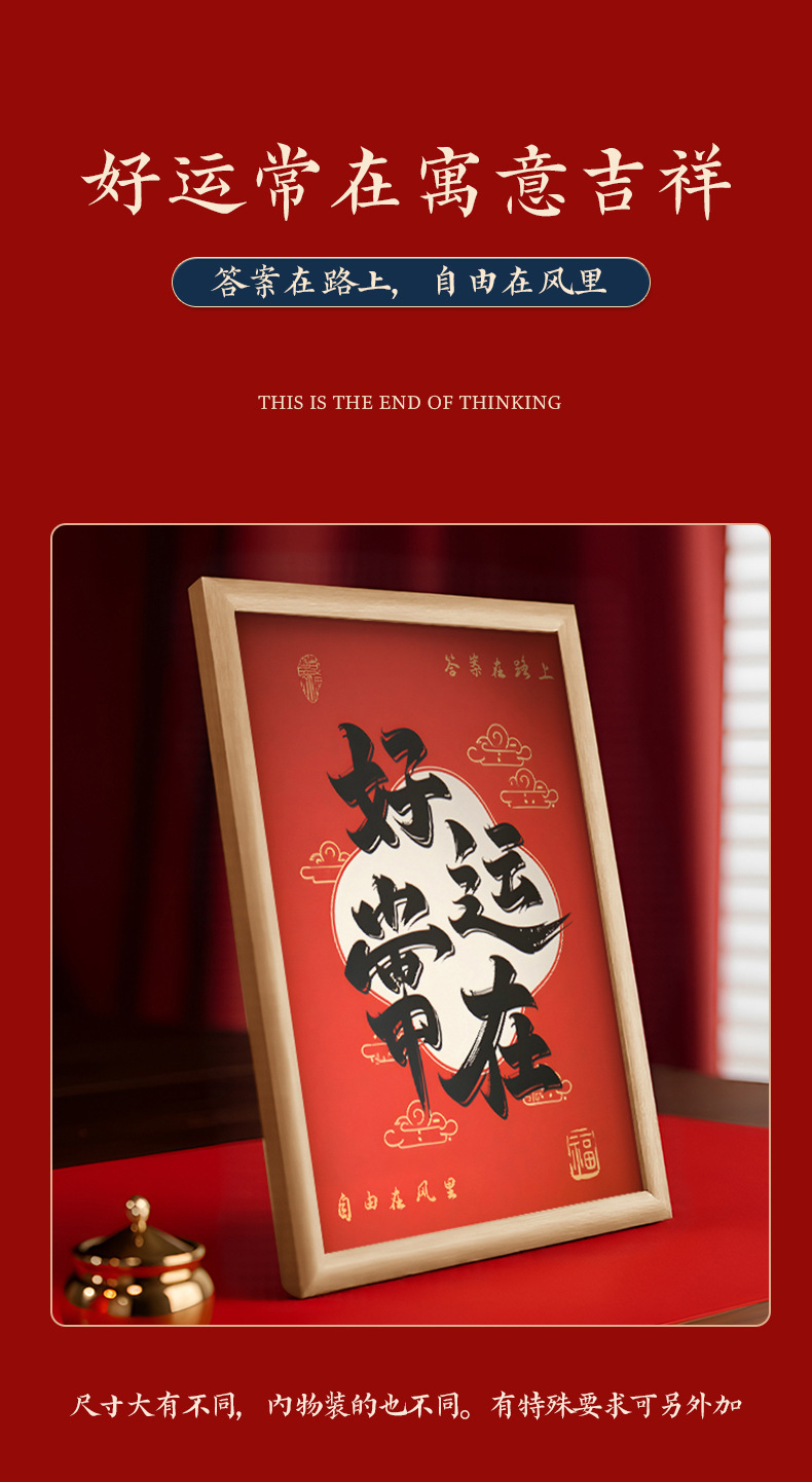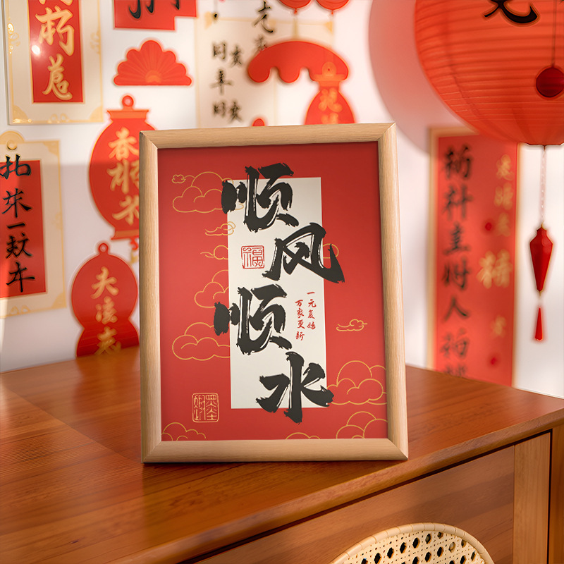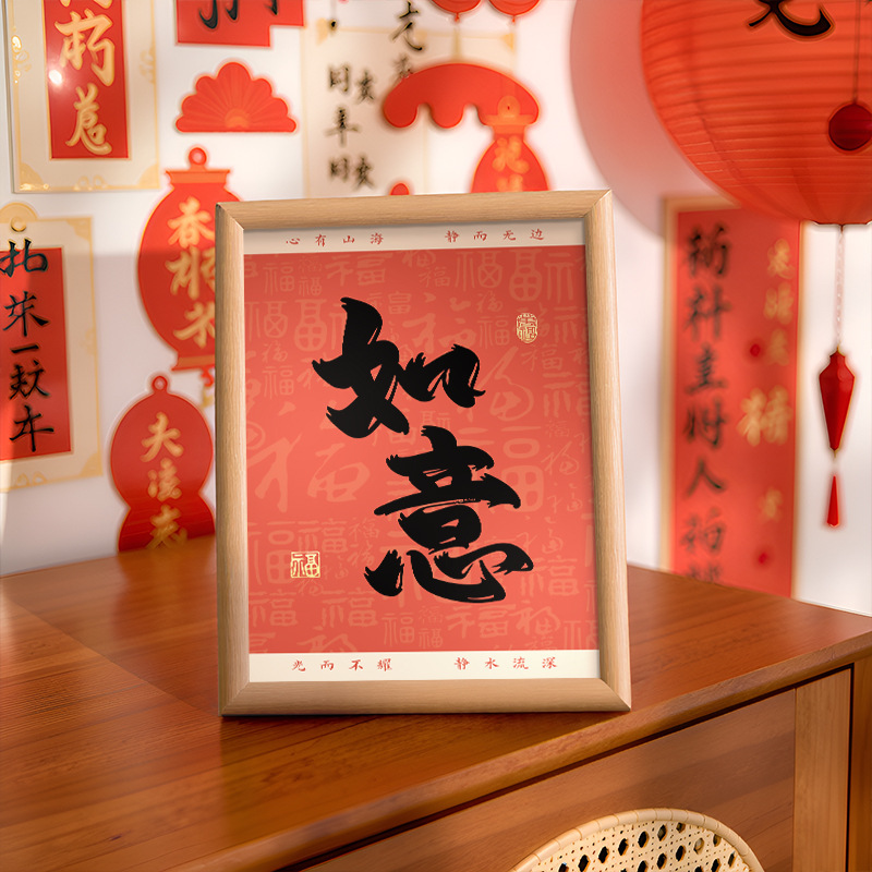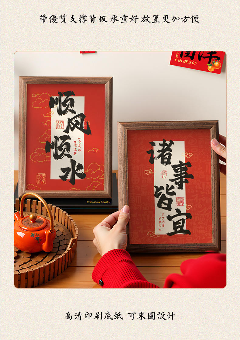 새로운 중국 스타일의 행운은 항상 붉은 색 서예 사진 프레임 테이블에 있습니다. 집들이 새 집 중공 액자 홈 장식 장식품 선물
