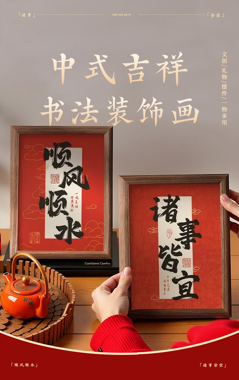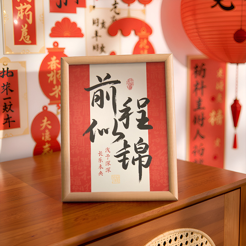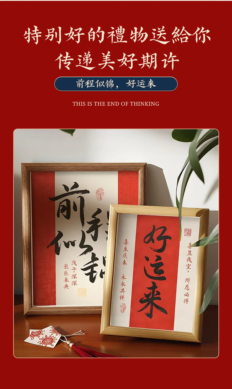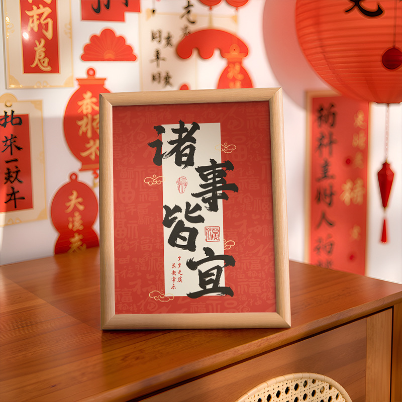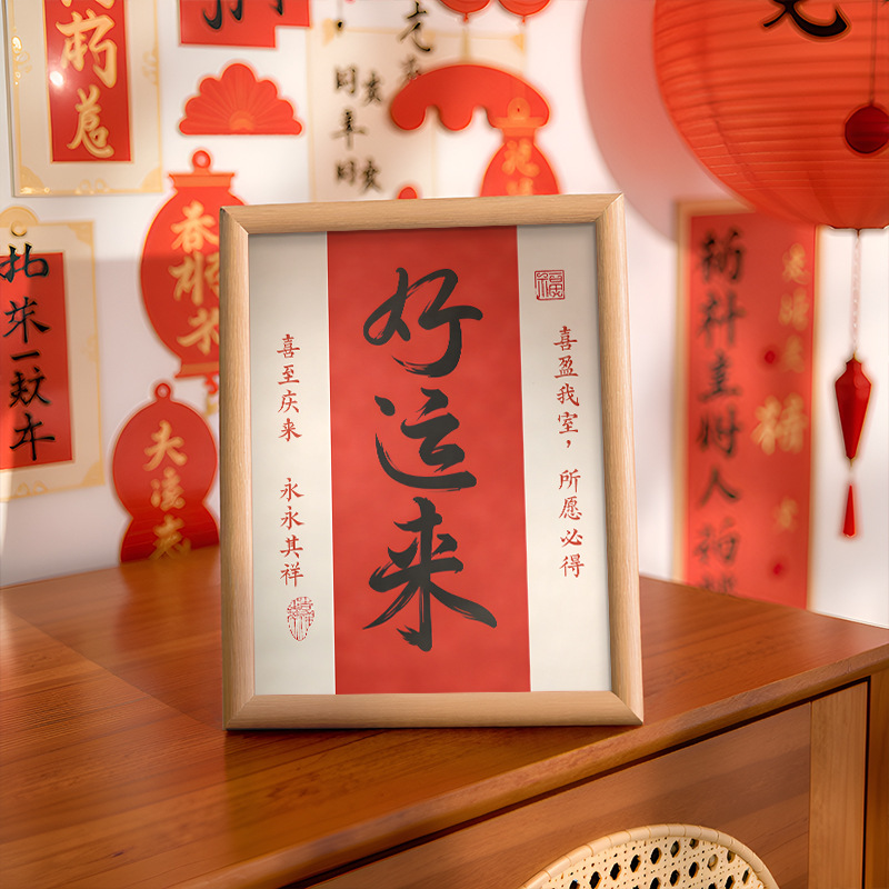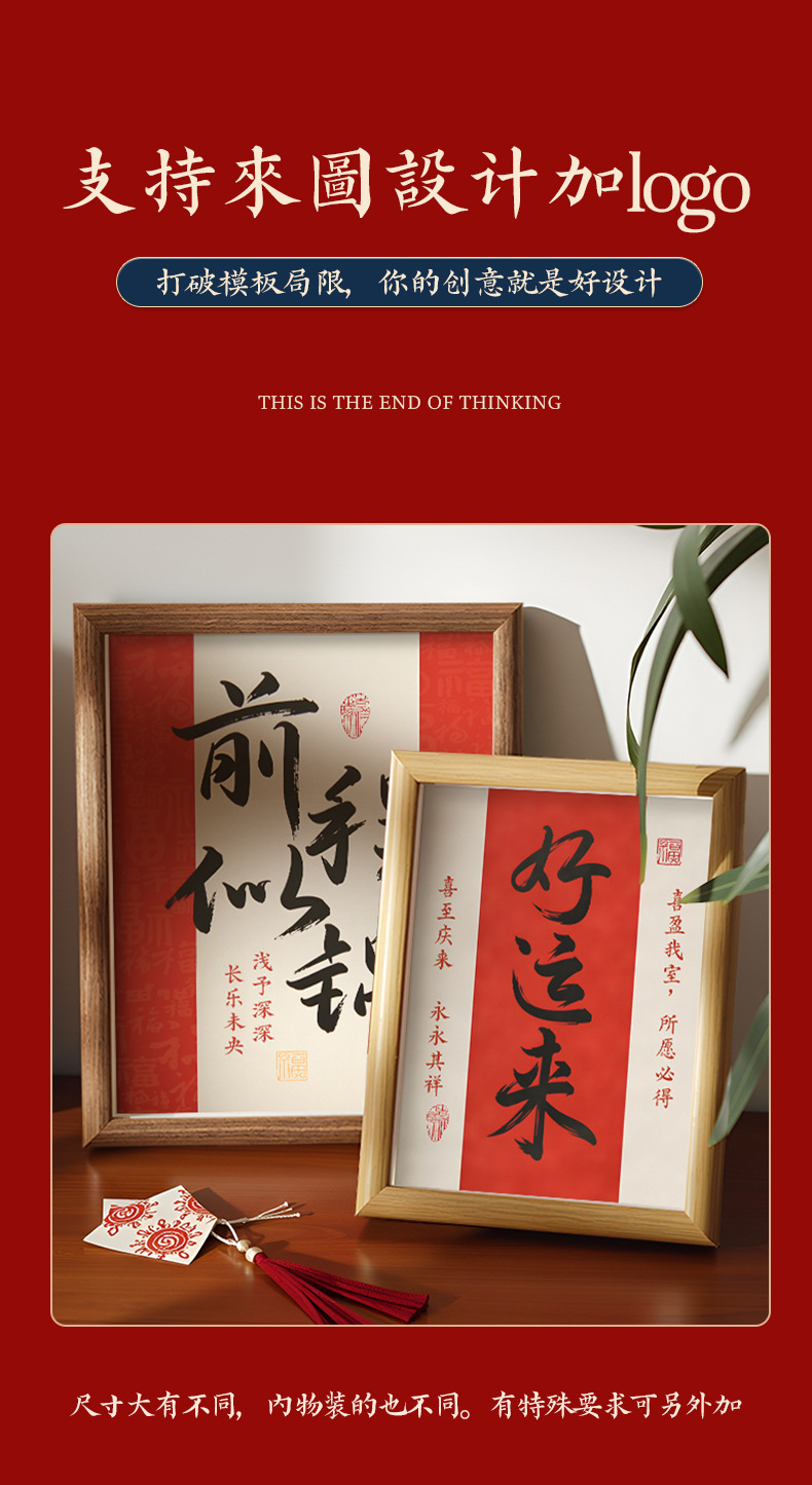 새로운 중국 스타일의 행운은 항상 붉은 색 서예 사진 프레임 테이블에 있습니다. 집들이 새 집 중공 액자 홈 장식 장식품 선물