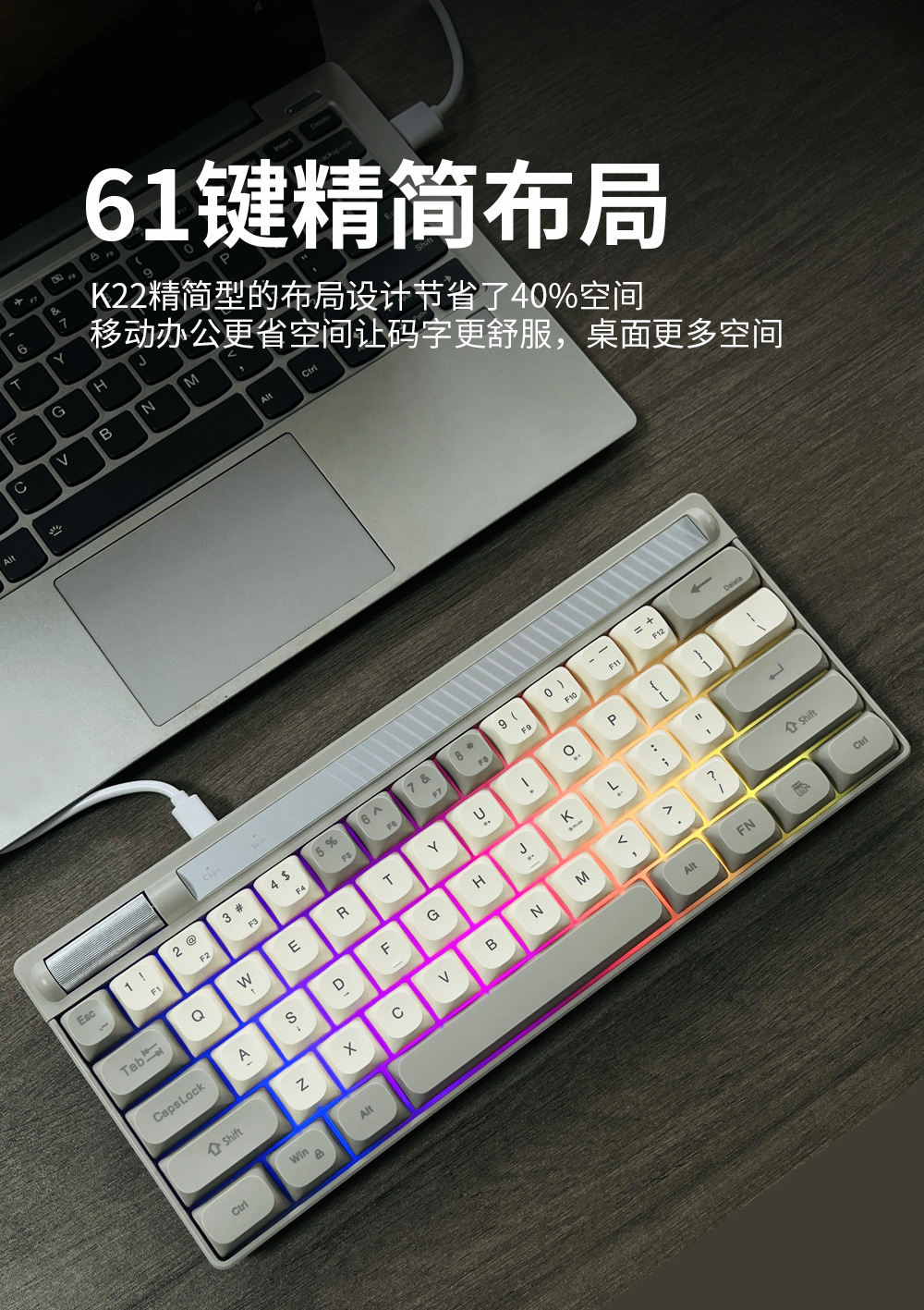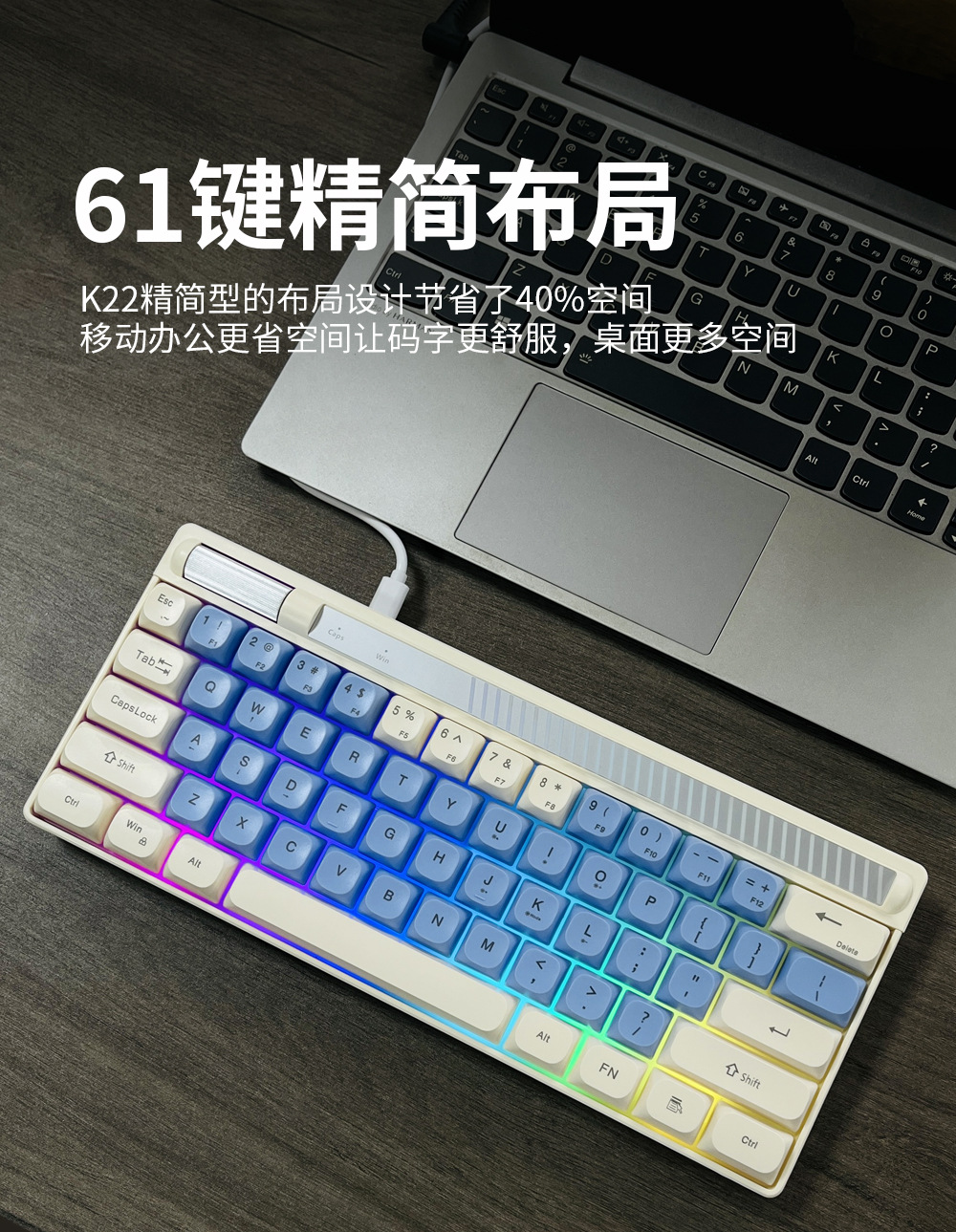 Senlonni K22 기계적 느낌 RGB 세련된 다채로운 유선 키보드 휴대용 다기능 색상 매칭 게임 키보드