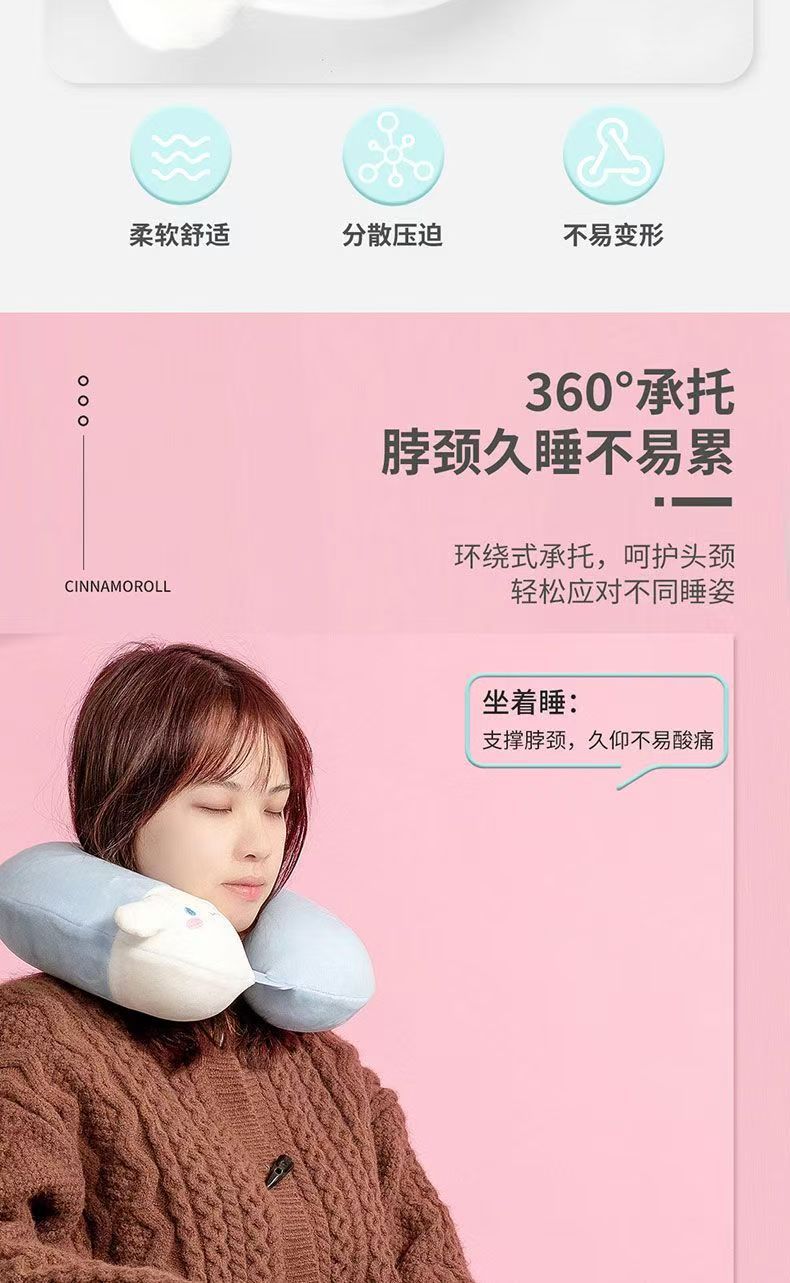 새로운 귀여운 계피 개 메모리 폼 U 자형 목 베개 여행 베개 줄무늬 경추 베개 비행기 메모리 목 베개