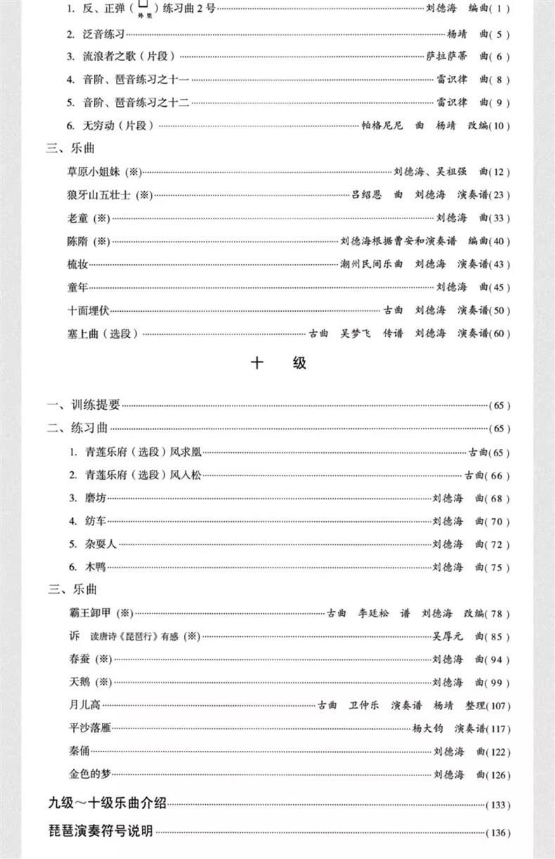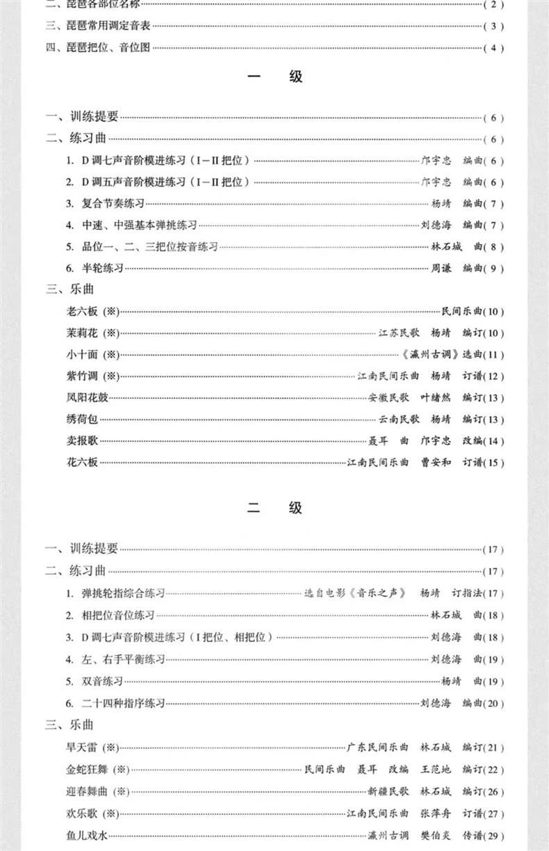 • 중국 음악원 비파 시험 레벨 1-10