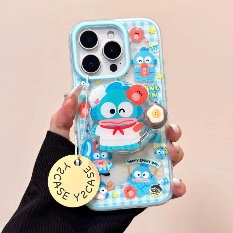 Apple 16promax 휴대폰 케이스 15plus14 소프트 13/11/12에 적합한 자석 홀더가 있는 회전 광대 물고기