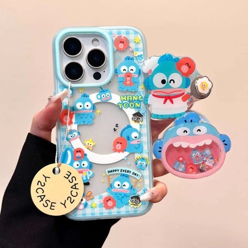 Apple 16promax 휴대폰 케이스 15plus14 소프트 13/11/12에 적합한 자석 홀더가 있는 회전 광대 물고기스토어 가기