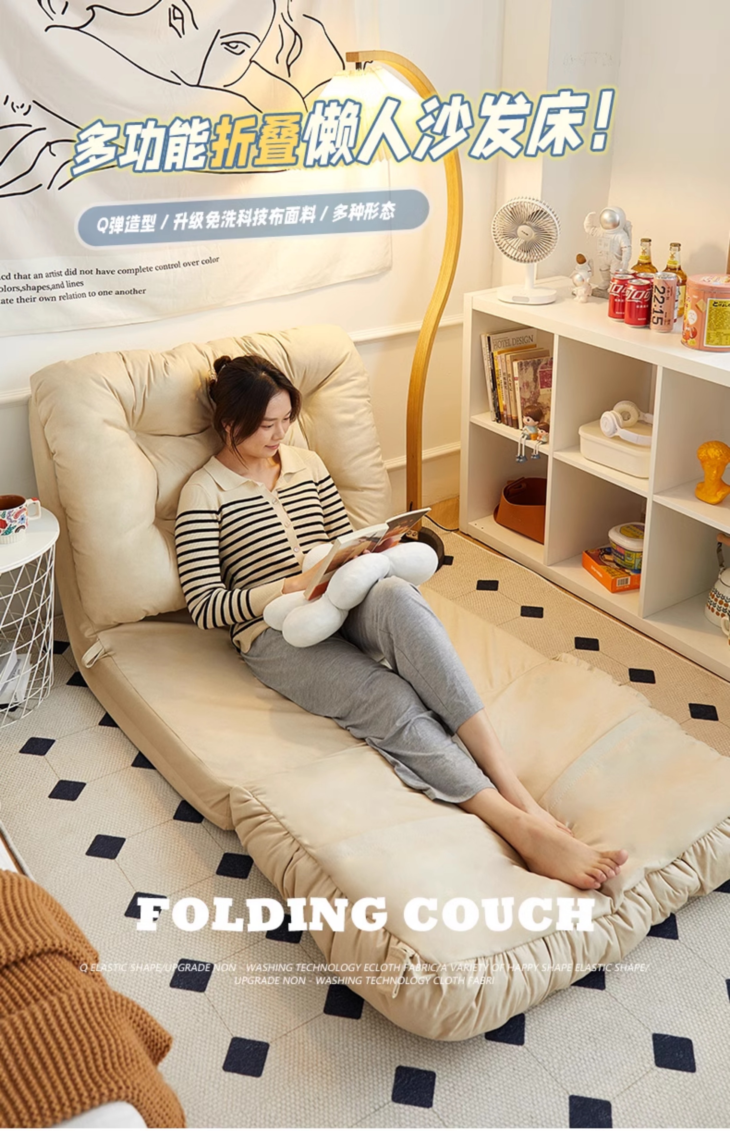 리클라이닝 및 수면이 가능한 게으른 소파, 싱글 네스트 침대, 인간 개집, 다다미 바닥 플로팅 창 접이식 소파 베드스토어 가기