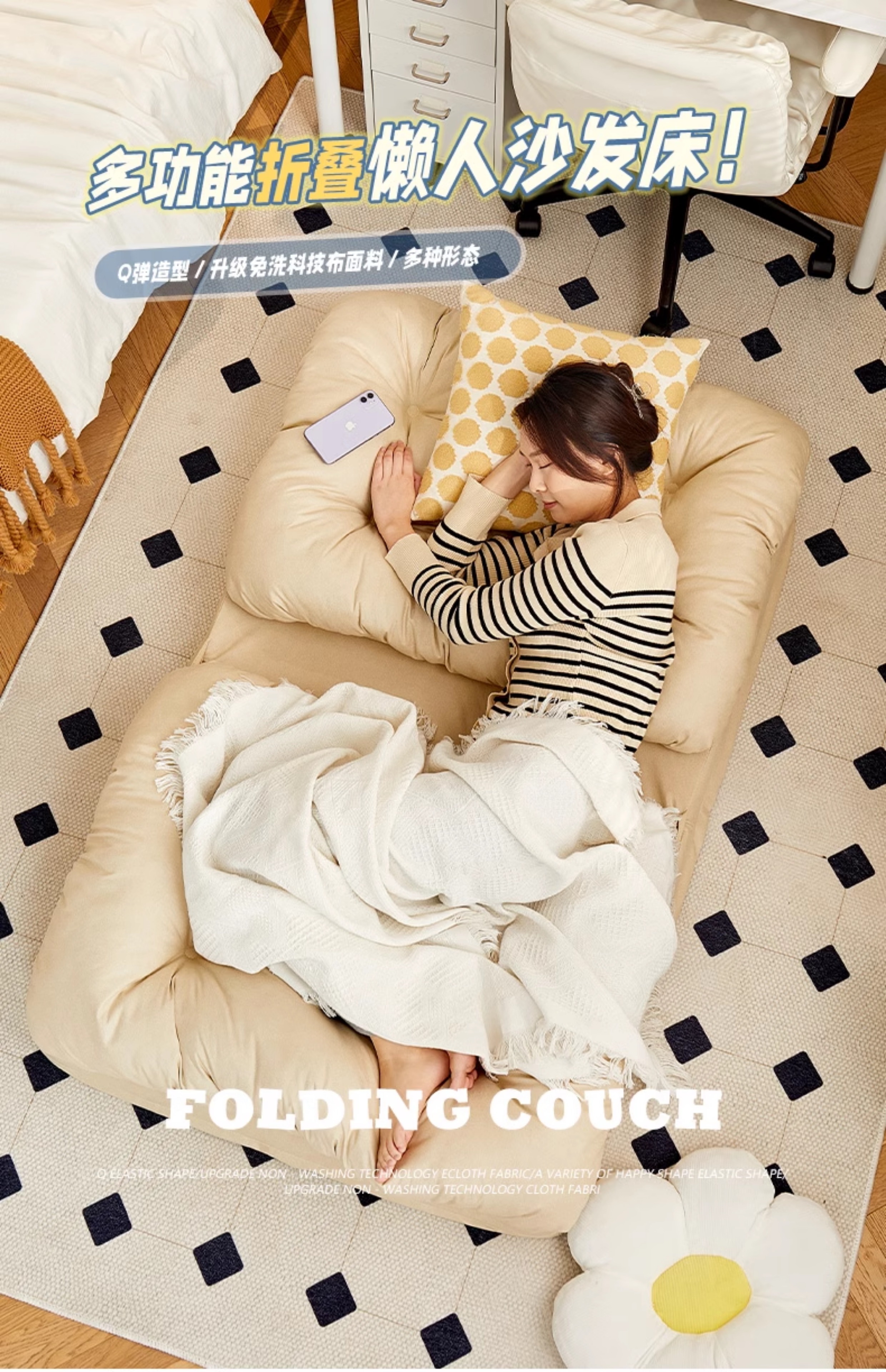 리클라이닝 및 수면이 가능한 게으른 소파, 싱글 네스트 침대, 인간 개집, 다다미 바닥 플로팅 창 접이식 소파 베드
