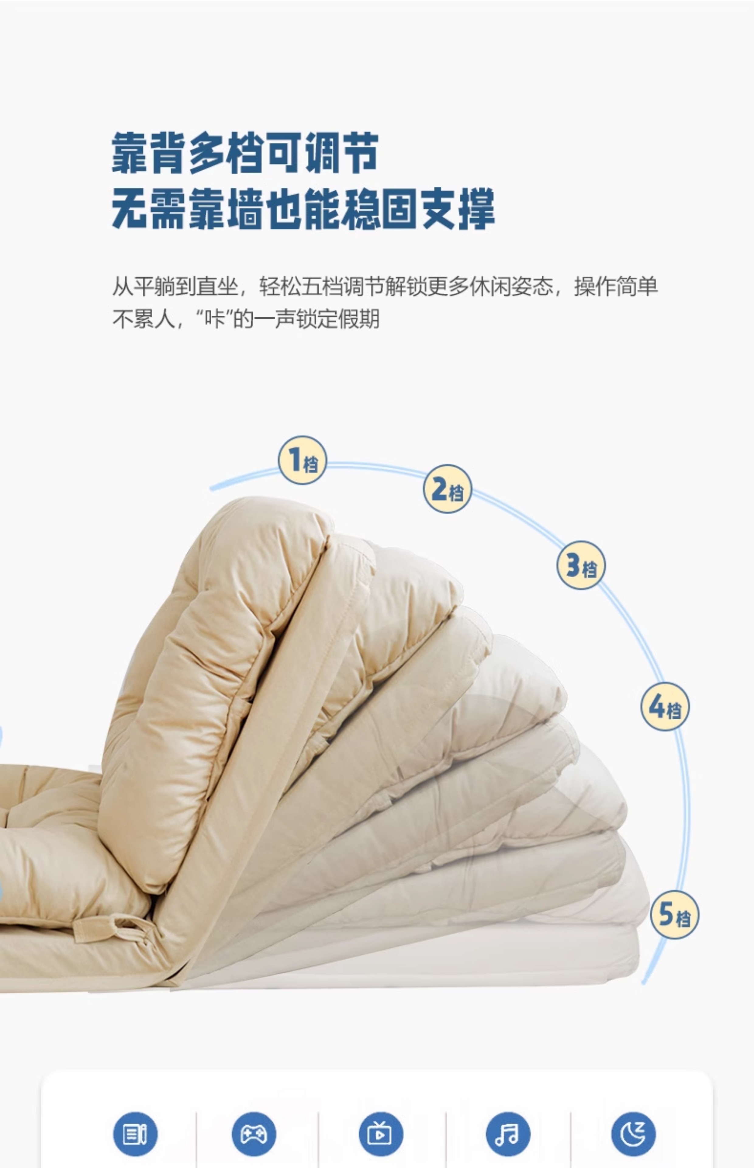 • 米白色120CM+五档扶手【升级防水科技布料】