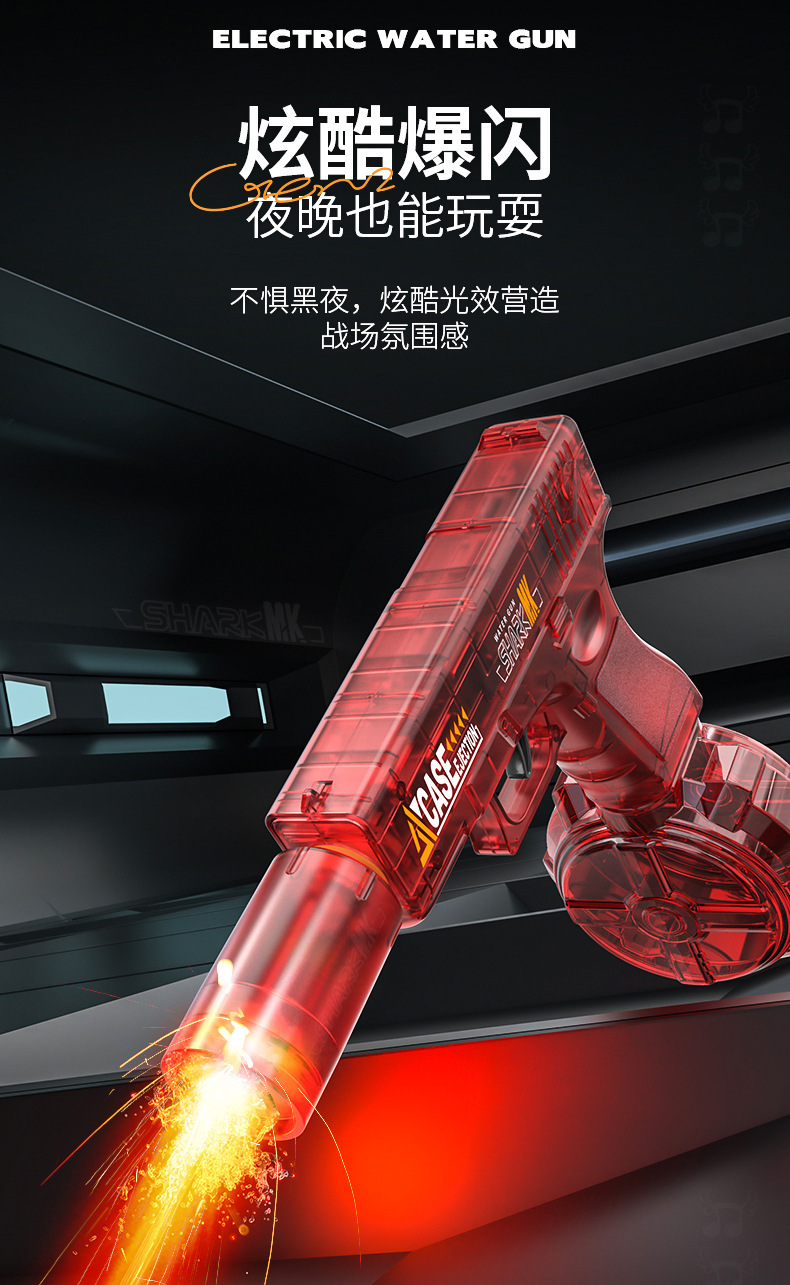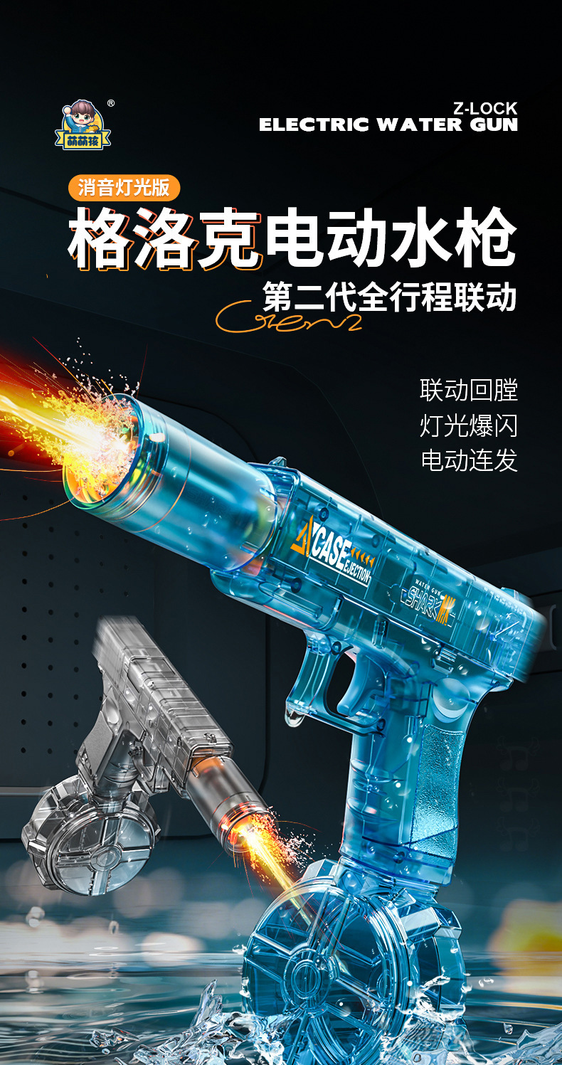 플래시 조명, 풀 스트로크, 고속 연결, 대용량 전기 어린이 장난감을 갖춘 국경 간 2세대 글록 물총