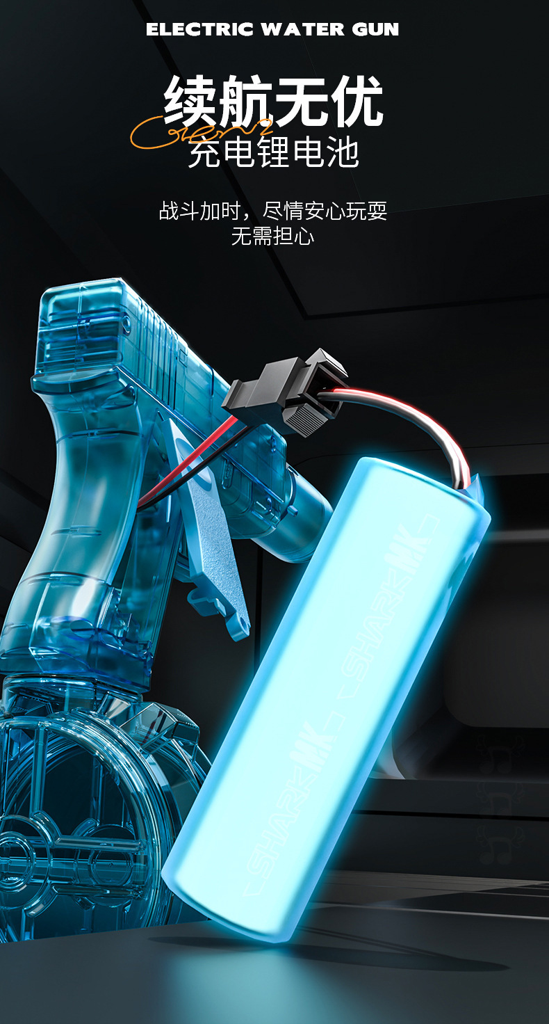 플래시 조명, 풀 스트로크, 고속 연결, 대용량 전기 어린이 장난감을 갖춘 국경 간 2세대 글록 물총스토어 가기