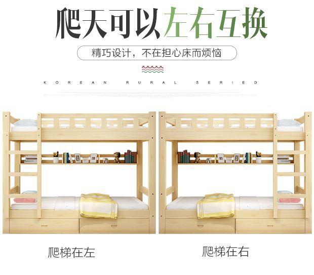 • 높고 낮은 침대 + 책장 + 이중 서랍 + 상하 매트리스