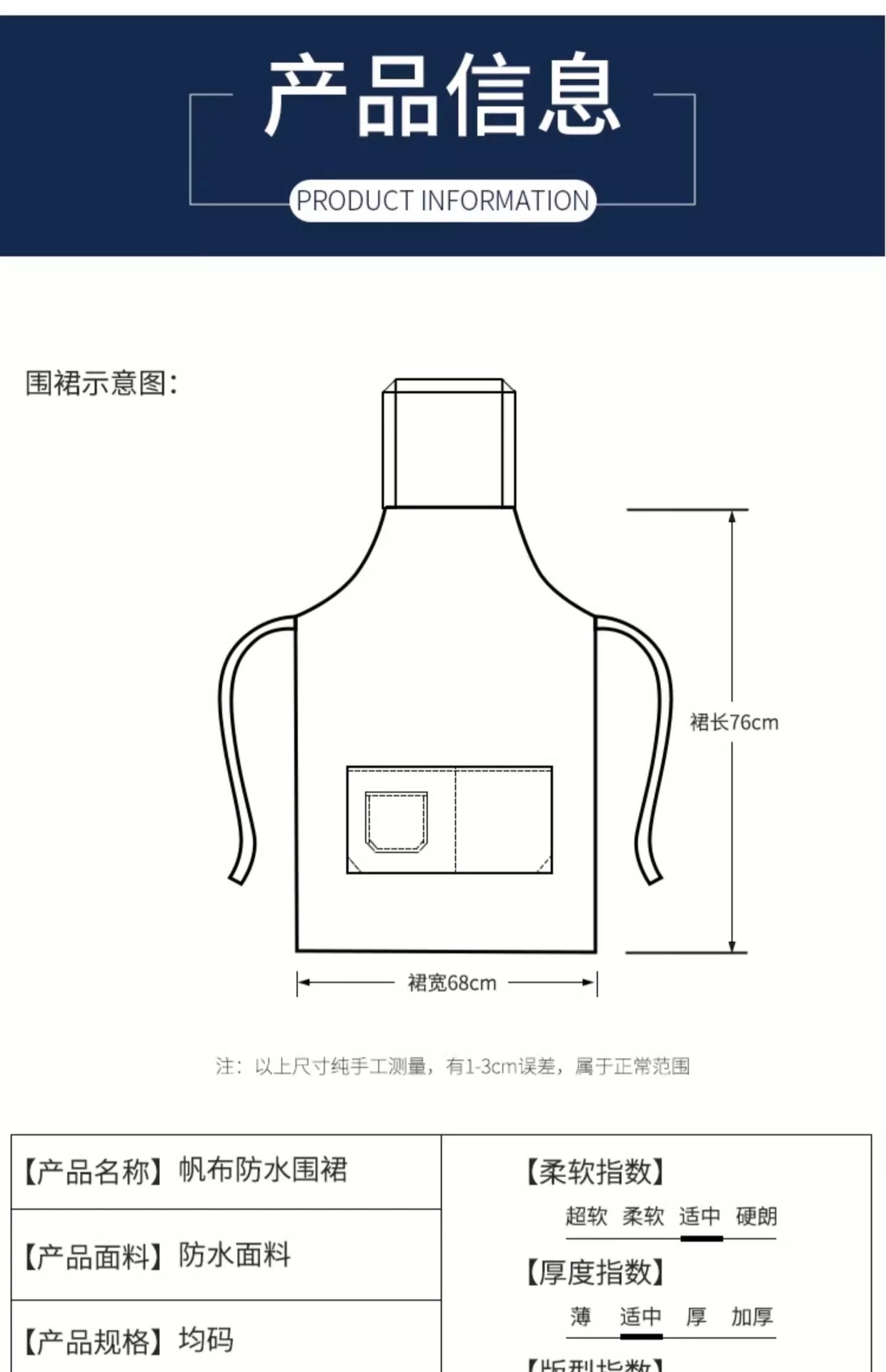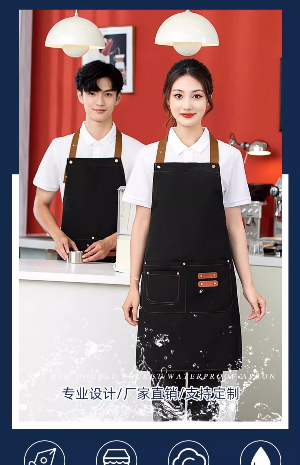• 06 넓어진 어깨끈 조절 가능한 방수 앞치마 네이비블루