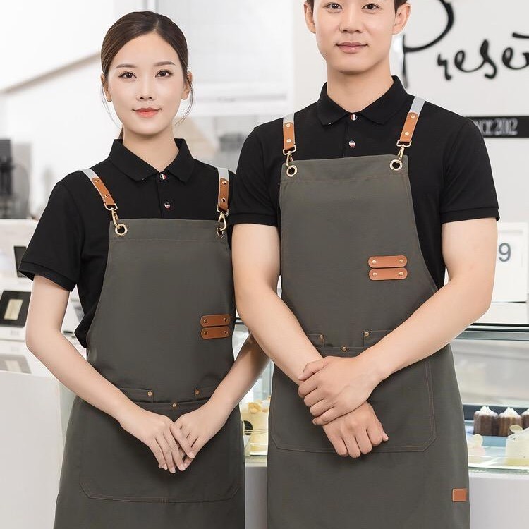 • 09 어깨끈 인터넷 연예인 캔버스 방수 앞치마 다크 커피