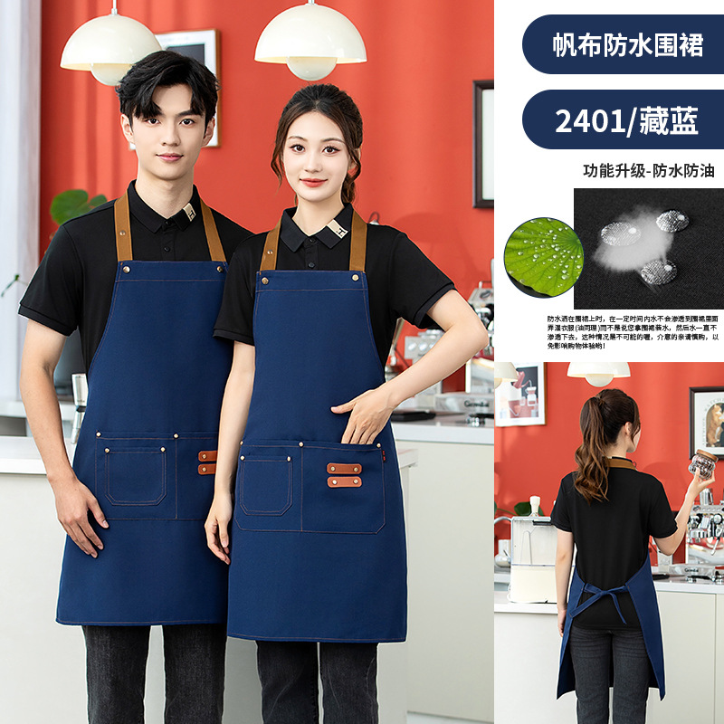 • 09 어깨끈 인터넷 연예인 캔버스 방수 앞치마 다크블루