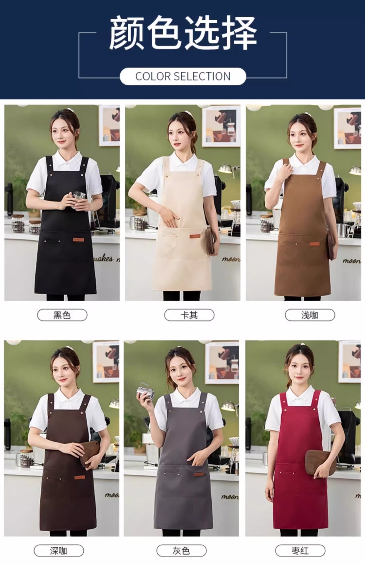• 06 넓어진 어깨끈 조절 가능한 방수 앞치마 다크 브라운