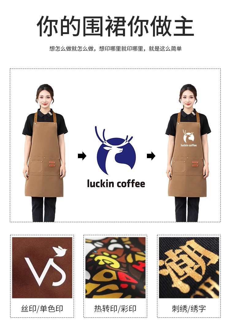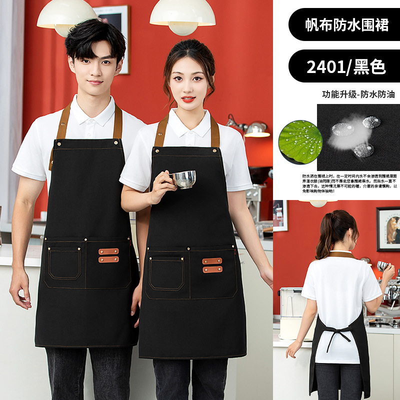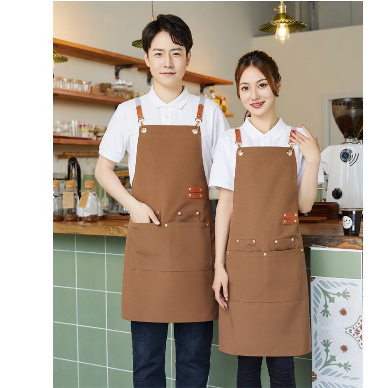 캔버스 앞치마 맞춤 로고 인쇄 케이터링 밀크티 커피숍 호텔 레스토랑 방수 작업복 앞치마 민소매스토어 가기