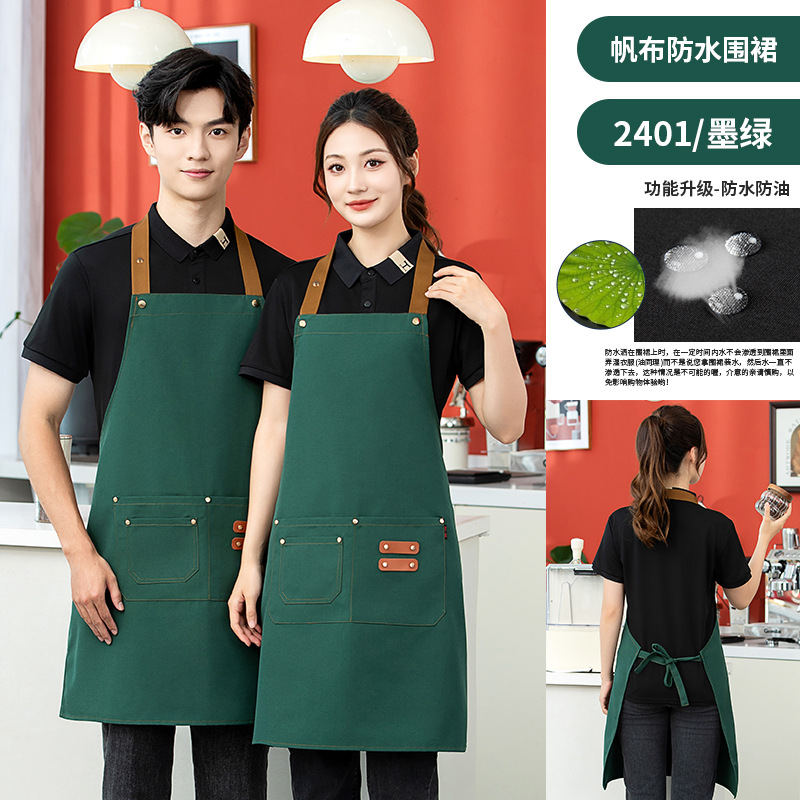 • 09 어깨끈 인터넷 연예인 캔버스 방수 앞치마 다크그린
