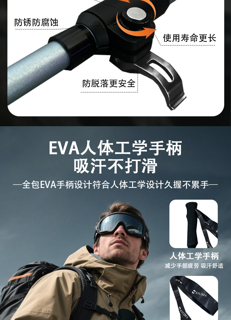 킬리마 등산 스틱 알루미늄 합금 접이식 신축성 높은 강도의 야외 미끄럼 방지 경량 휴대용