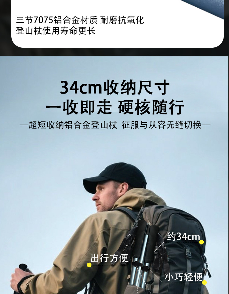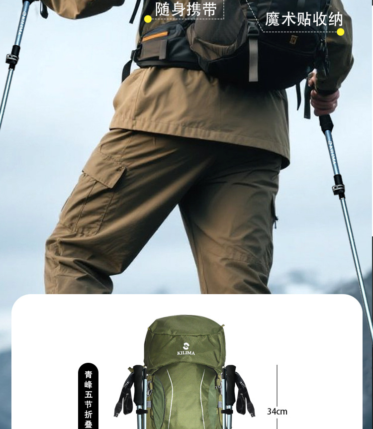 킬리마 등산 스틱 알루미늄 합금 접이식 신축성 높은 강도의 야외 미끄럼 방지 경량 휴대용스토어 가기