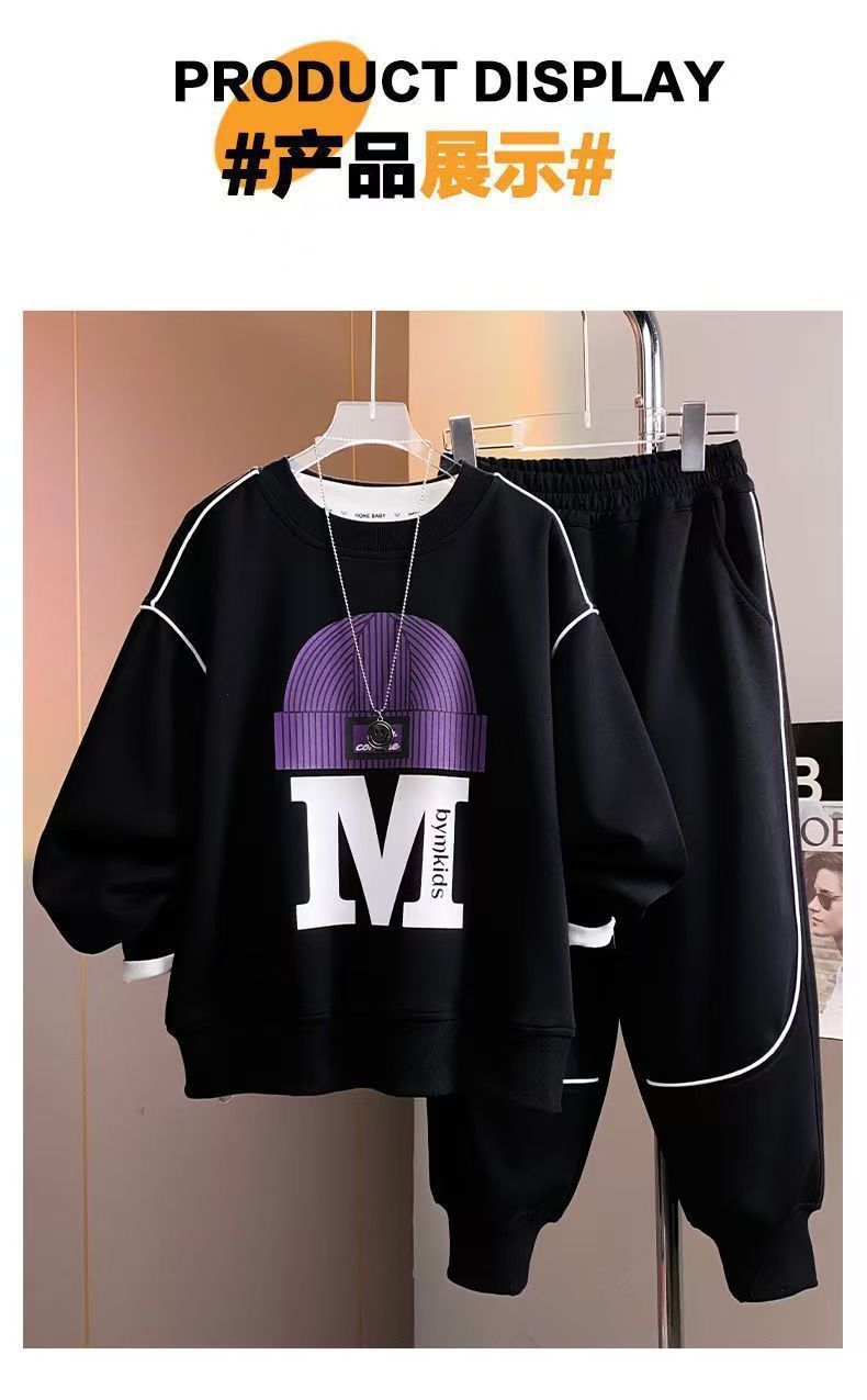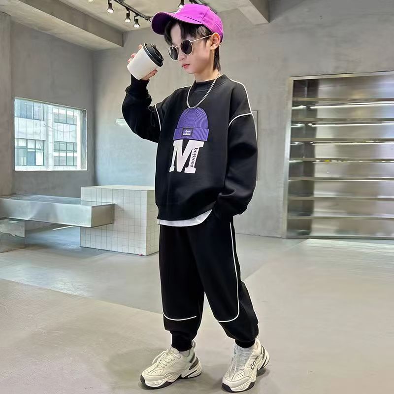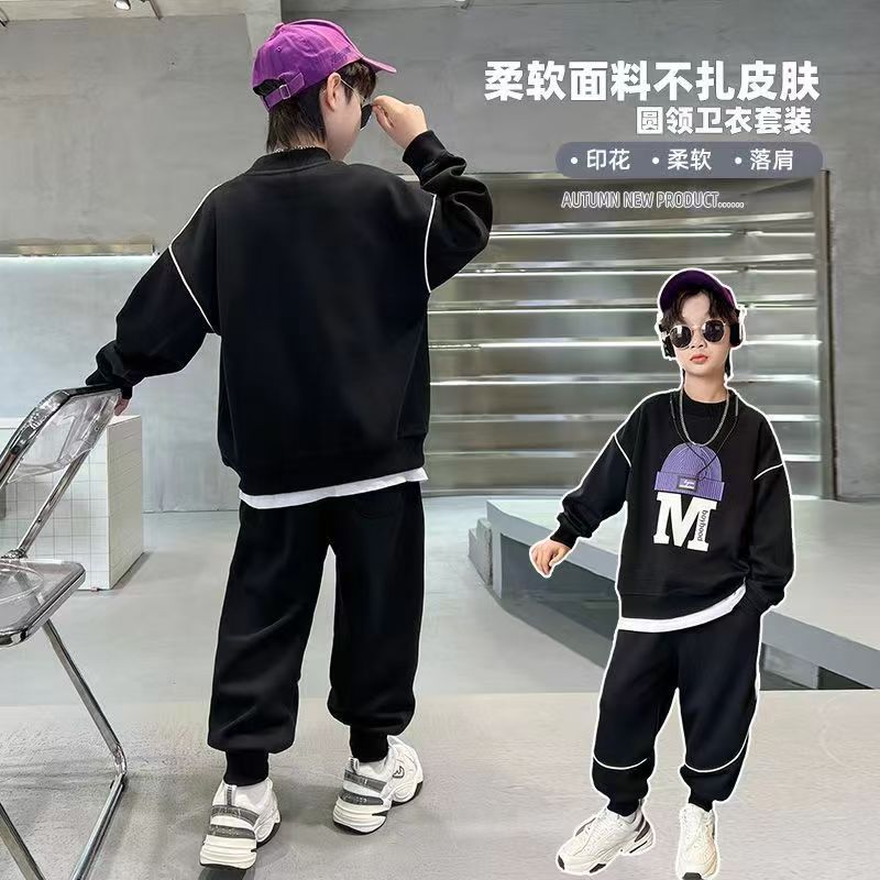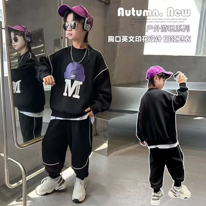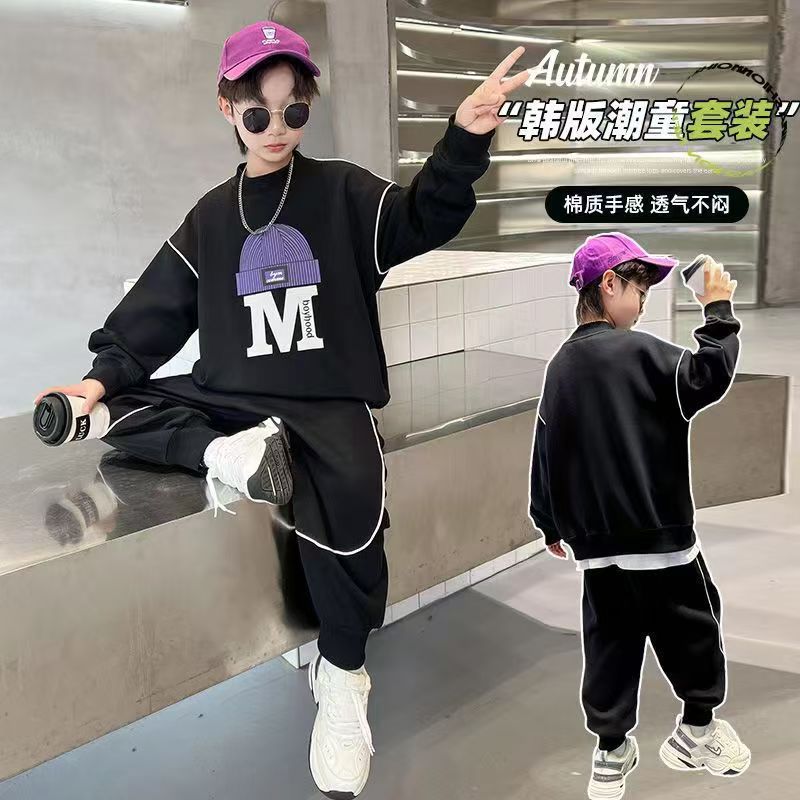 아동 및 남아 가을 한국식 양복 2025 새로운 유행 및 서양식 중대형 아동 봄, 가을 스포츠 스웨트 셔츠 투피스 세트스토어 가기