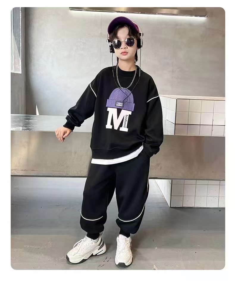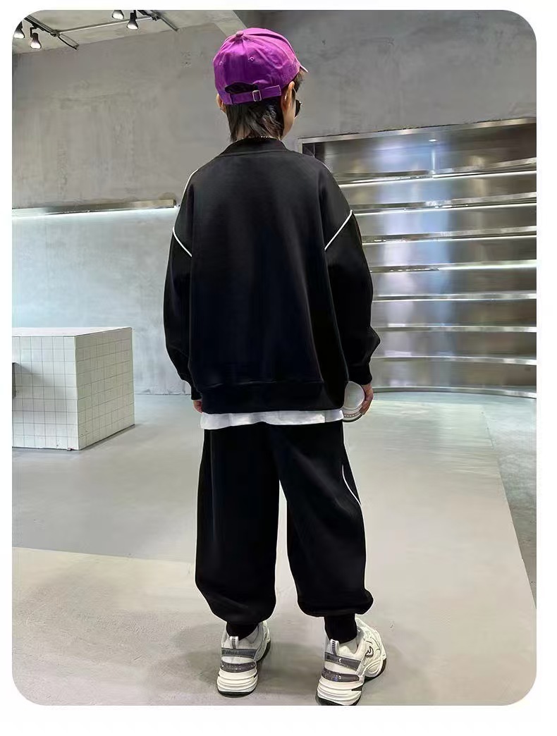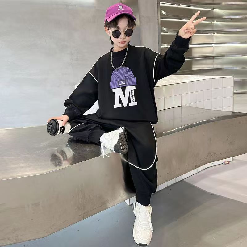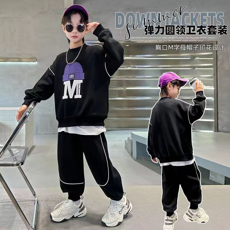 아동 및 남아 가을 한국식 양복 2025 새로운 유행 및 서양식 중대형 아동 봄, 가을 스포츠 스웨트 셔츠 투피스 세트스토어 가기