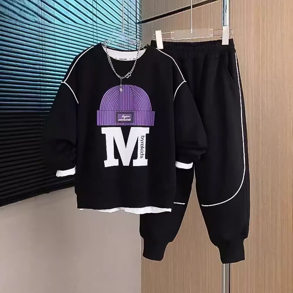 아동 및 남아 가을 한국식 양복 2025 새로운 유행 및 서양식 중대형 아동 봄, 가을 스포츠 스웨트 셔츠 투피스 세트