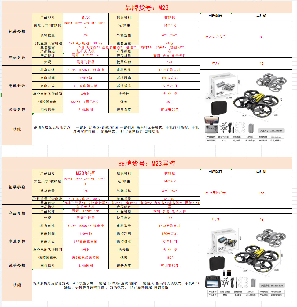 국경 간 신제품 M23 브러시리스 파워 드론 ESC 항공 사진 HD 항공기 광학 흐름 항공 사진 원격 제어 항공기