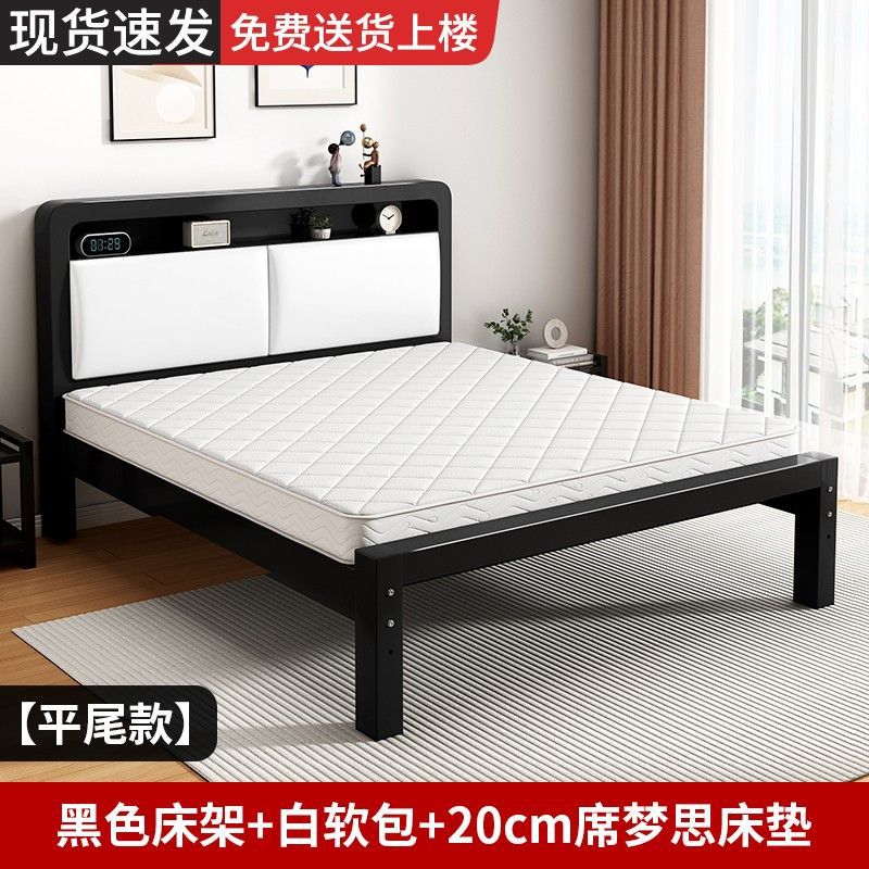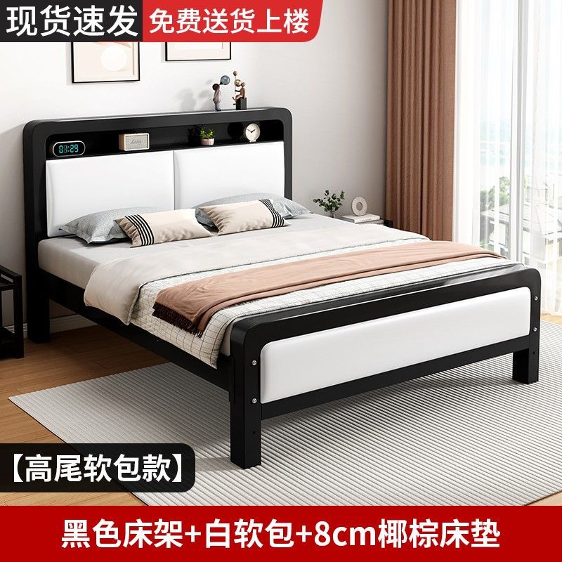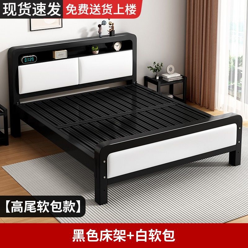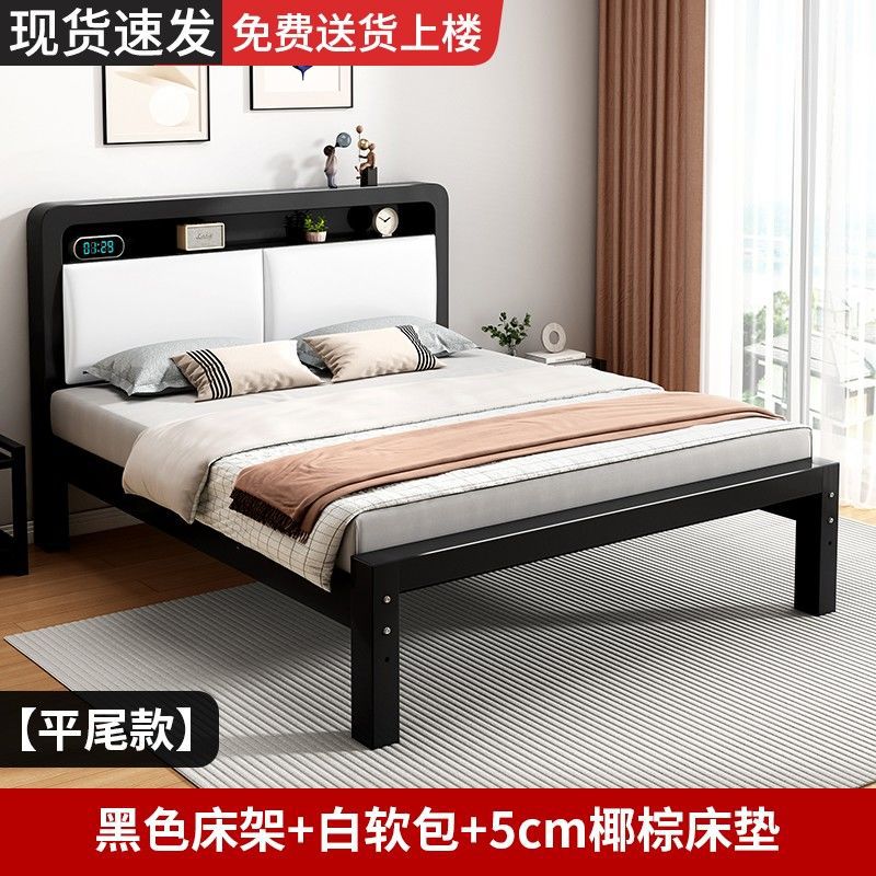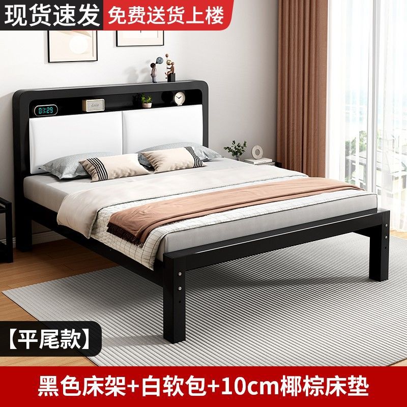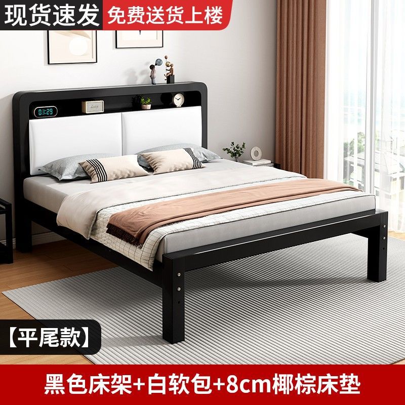 가정용 단순 철제 침대 1.8m 임대실용 두꺼운 더블 침대 1m 철제 프레임 침대 1.5m 침실 철제 침대