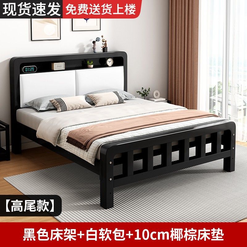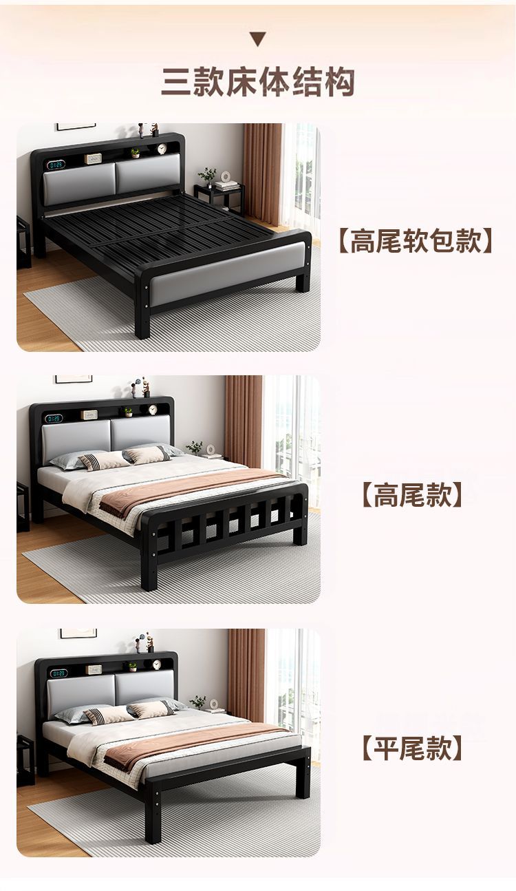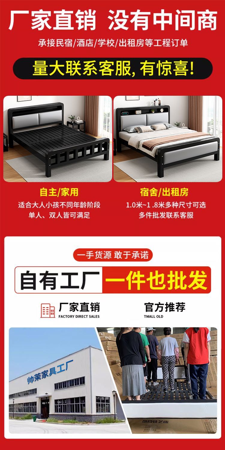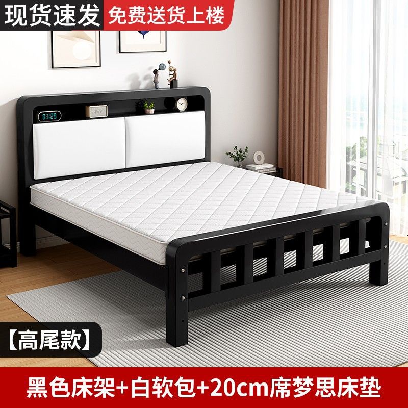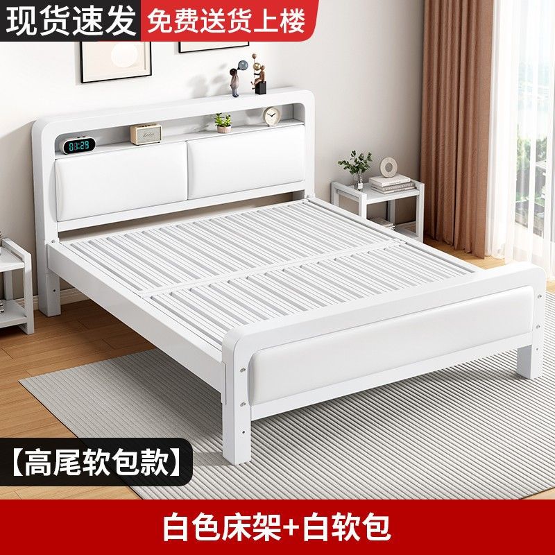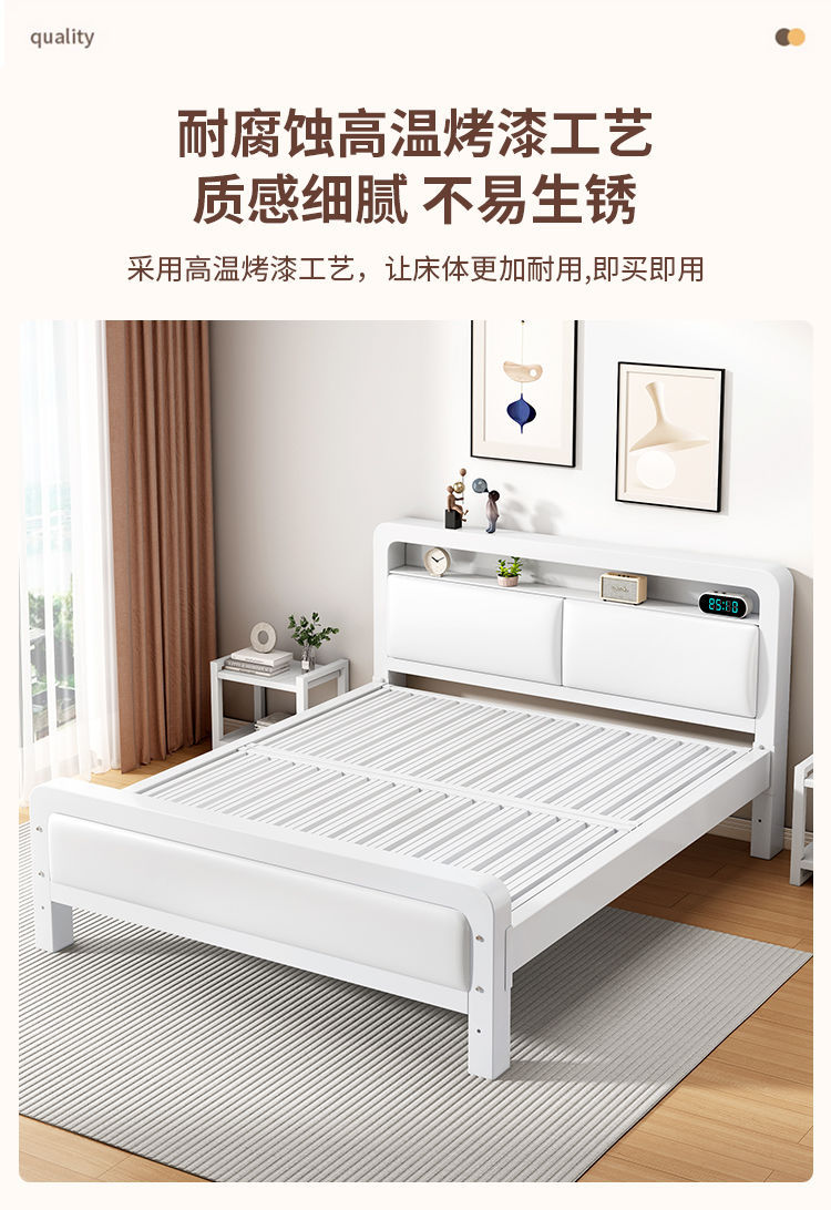 가정용 단순 철제 침대 1.8m 임대실용 두꺼운 더블 침대 1m 철제 프레임 침대 1.5m 침실 철제 침대