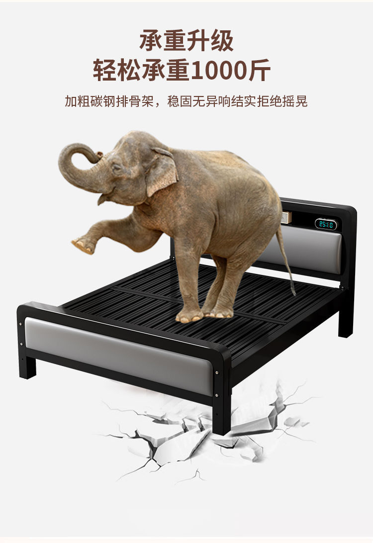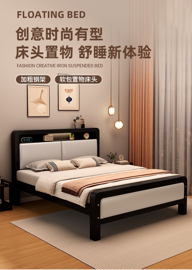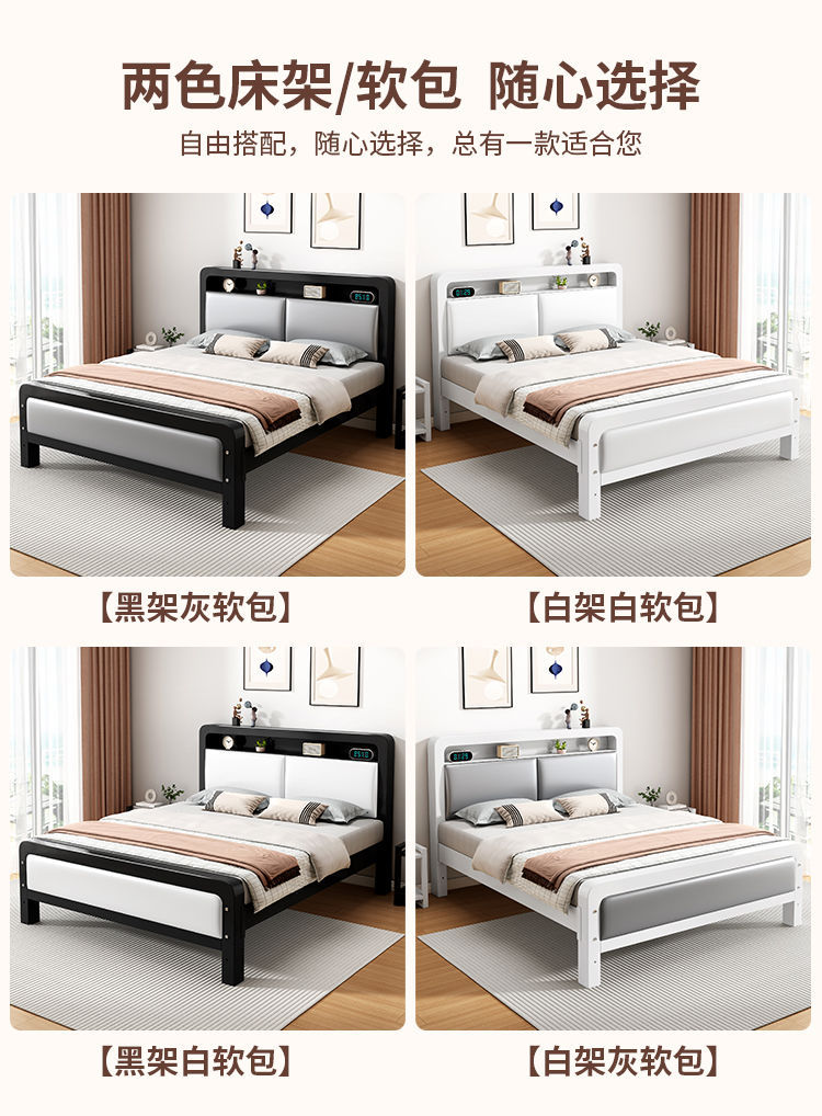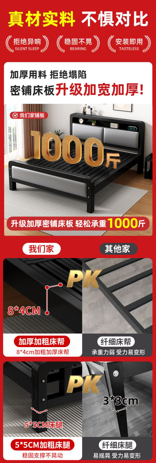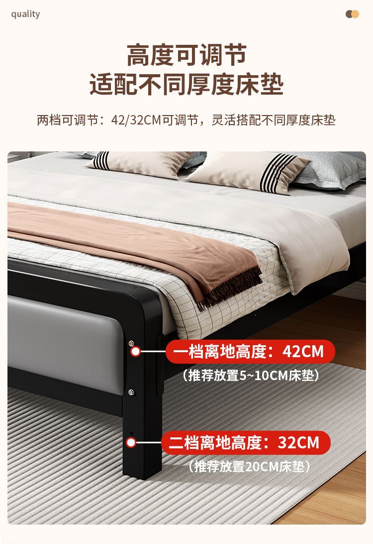 가정용 단순 철제 침대 1.8m 임대실용 두꺼운 더블 침대 1m 철제 프레임 침대 1.5m 침실 철제 침대