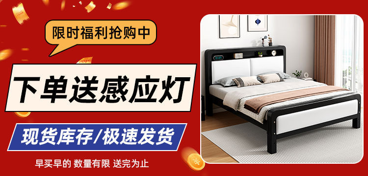 가정용 단순 철제 침대 1.8m 임대실용 두꺼운 더블 침대 1m 철제 프레임 침대 1.5m 침실 철제 침대스토어 가기