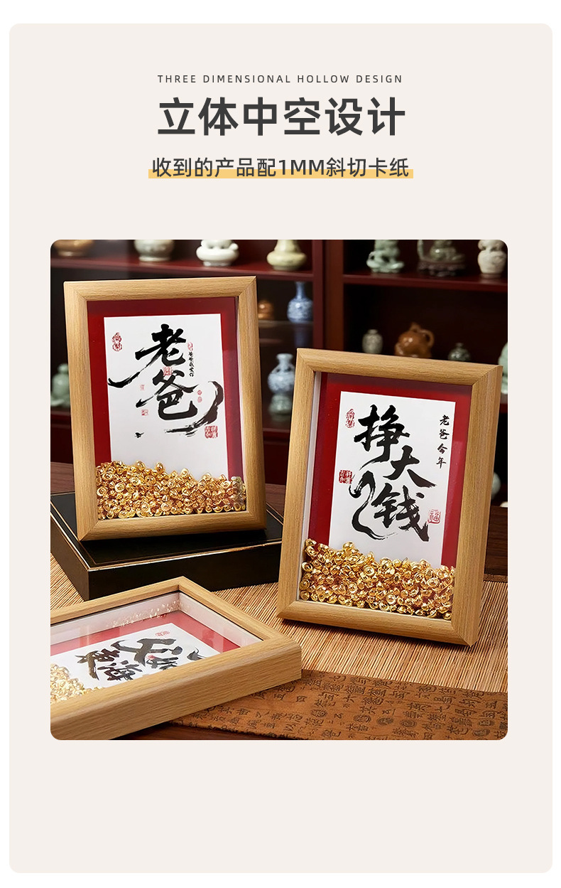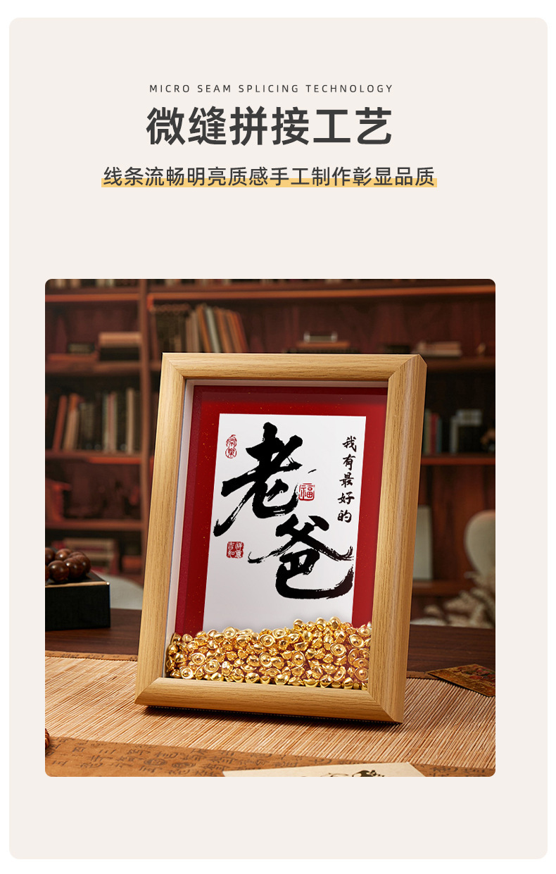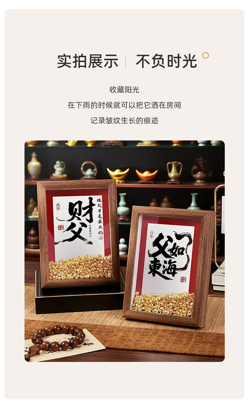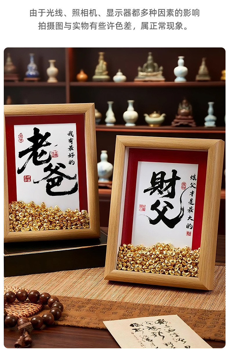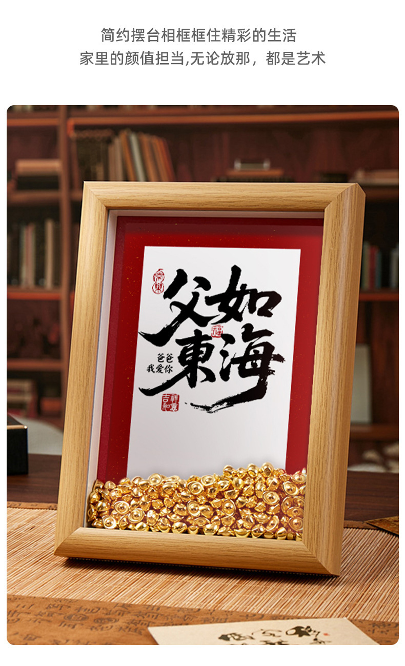 아버지의 날 선물로 부를 많이 벌 수 있습니다. 부를 끌어들이는 아버지 사진 프레임. 수제 DIY 주괴 동전 테이블 사진 프레임 창의적인 선물.스토어 가기