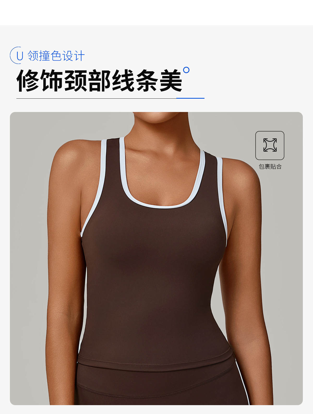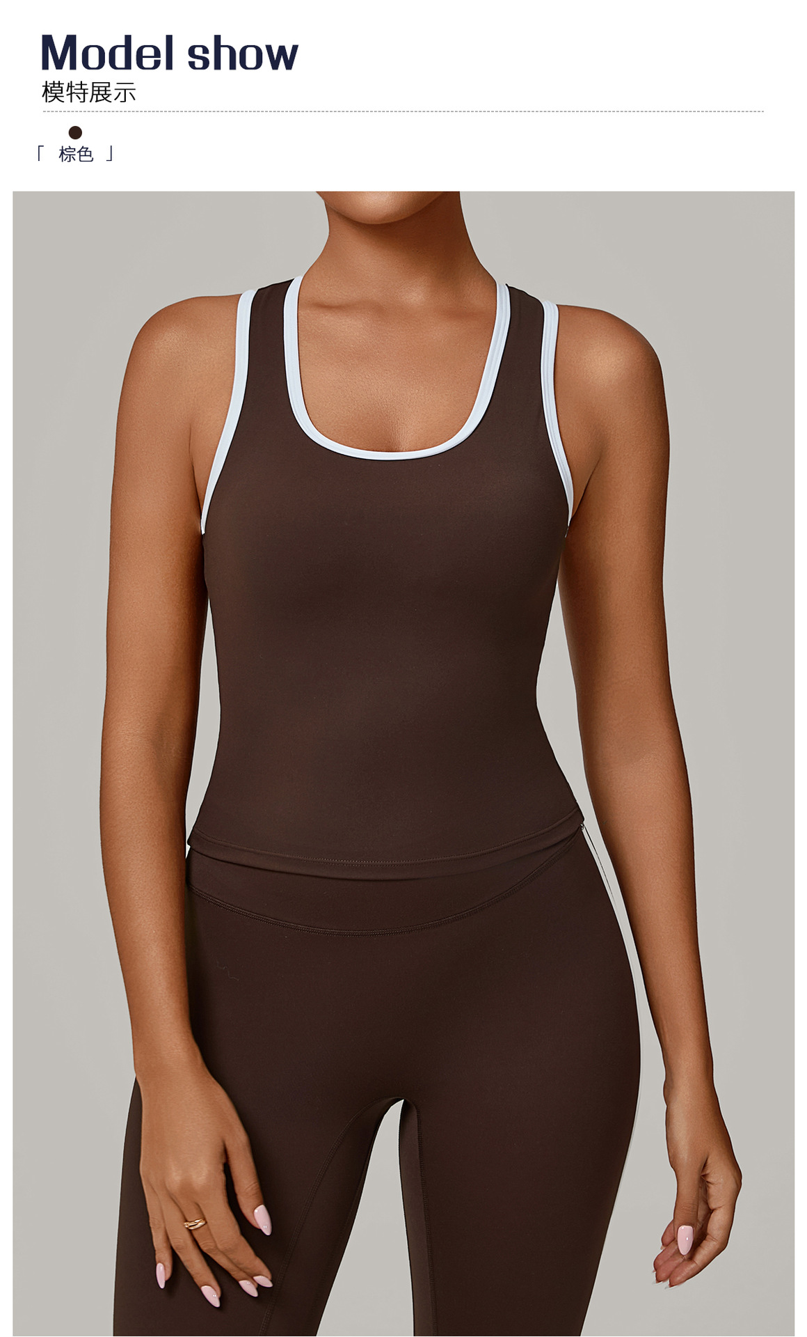 가슴 패드 없음, 대비 색상, 아름다운 등 요가 조끼, 속건성 피트니스 탑, 여성용 러닝 스포츠 조끼 7709