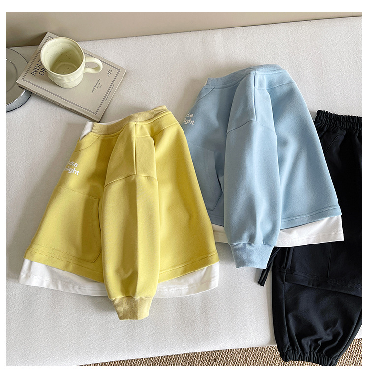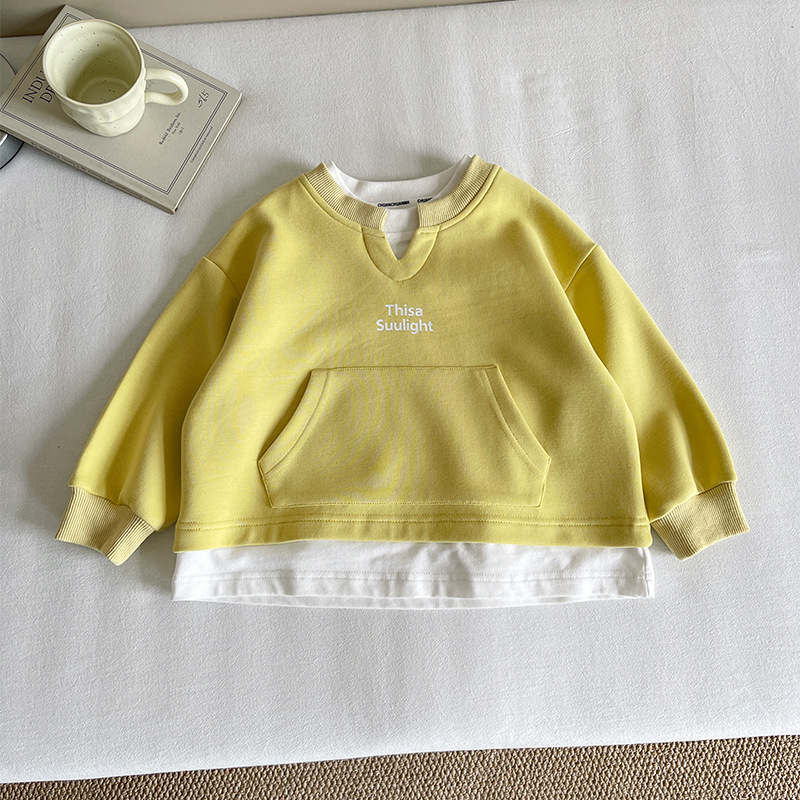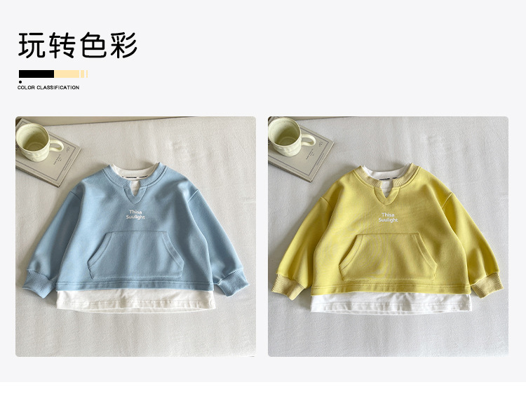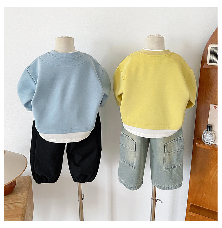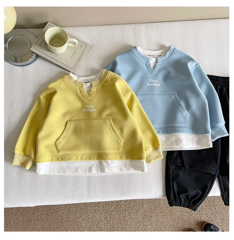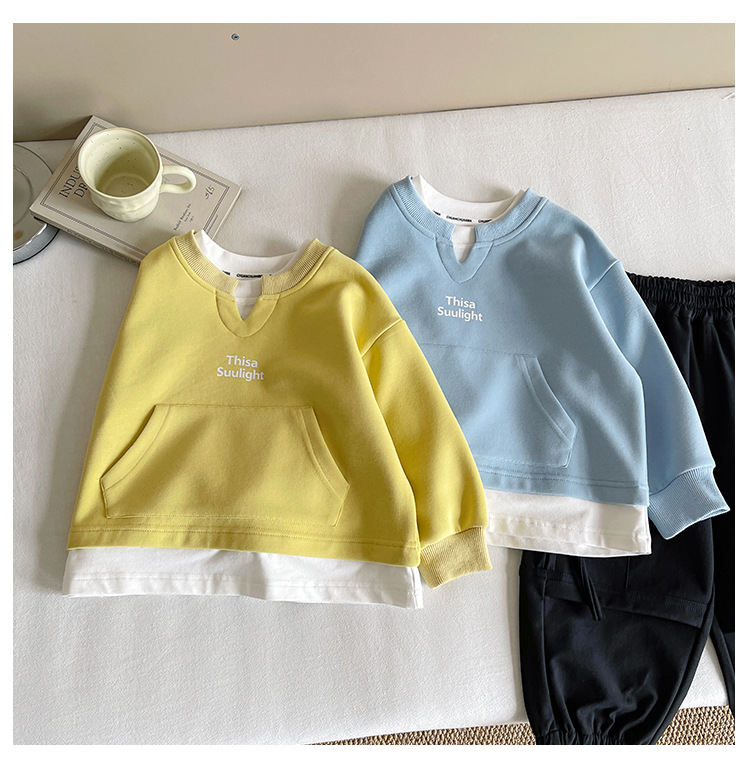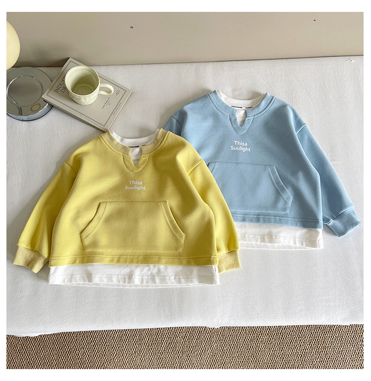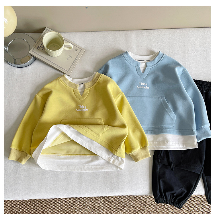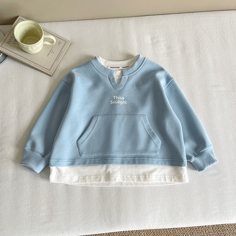 Nausicaa of the Valley 2025 가을 신작 아동복 아동 한국식 가짜 투피스 스플리싱 스웨트 셔츠 유행 소년 소녀 탑스토어 가기