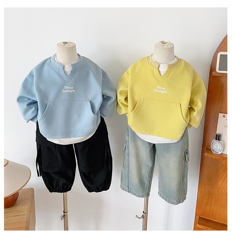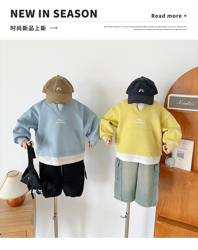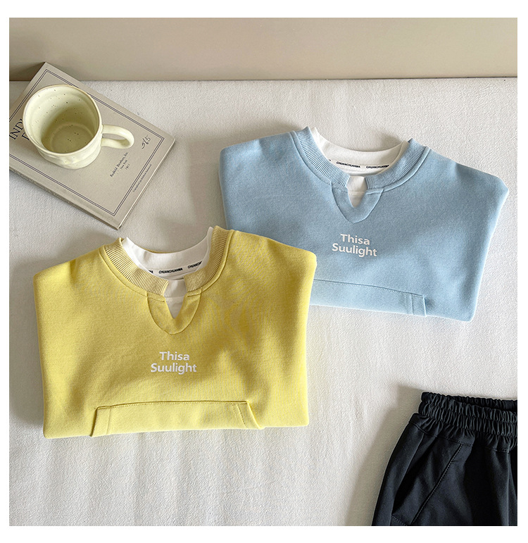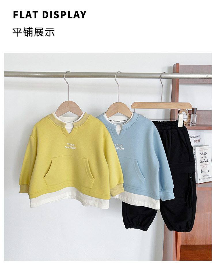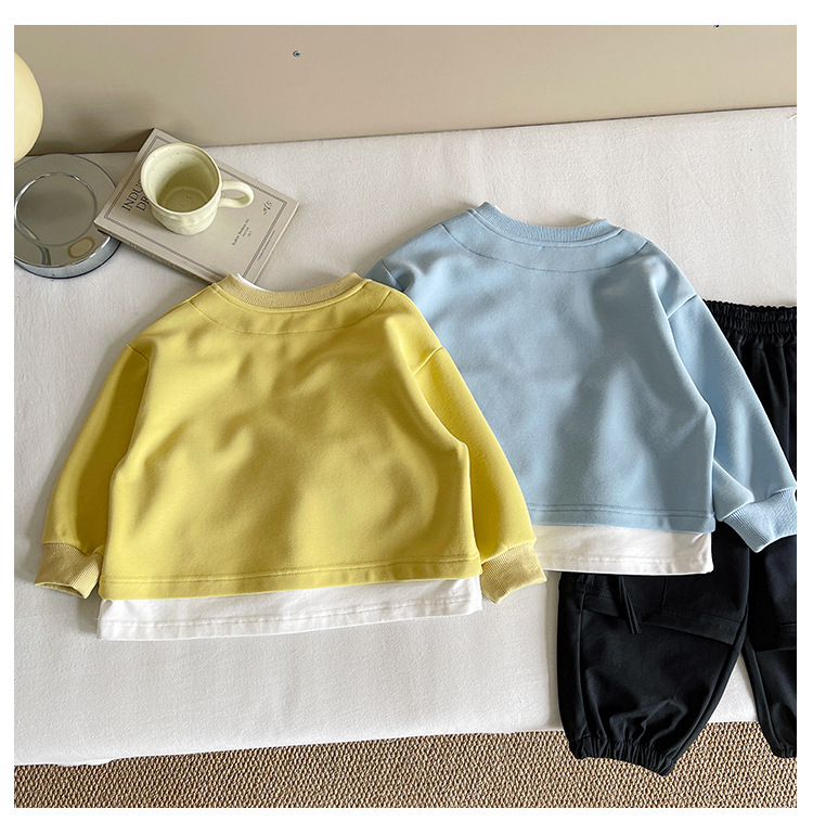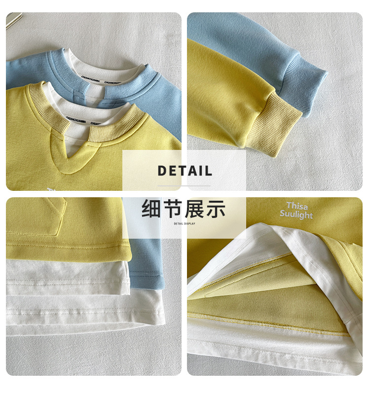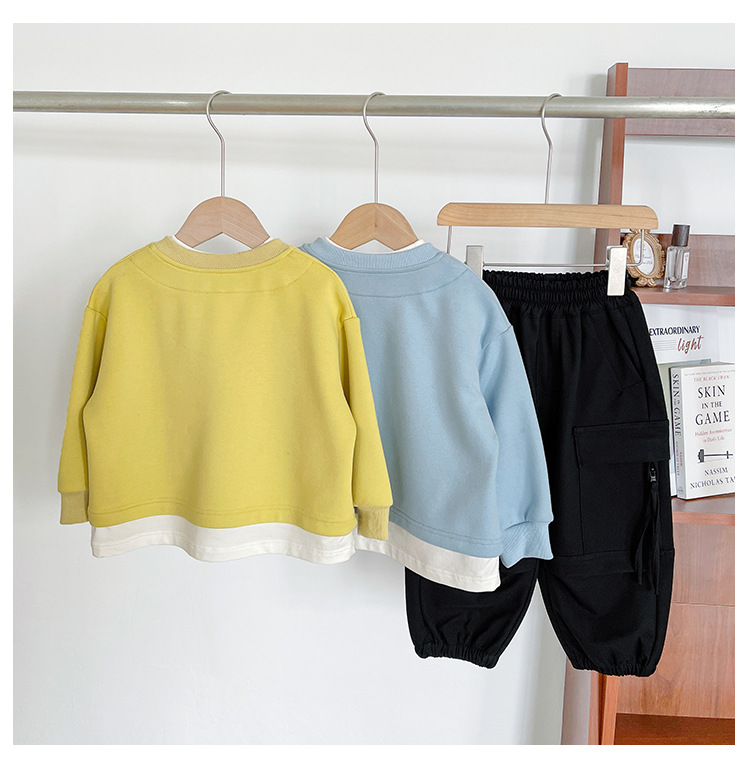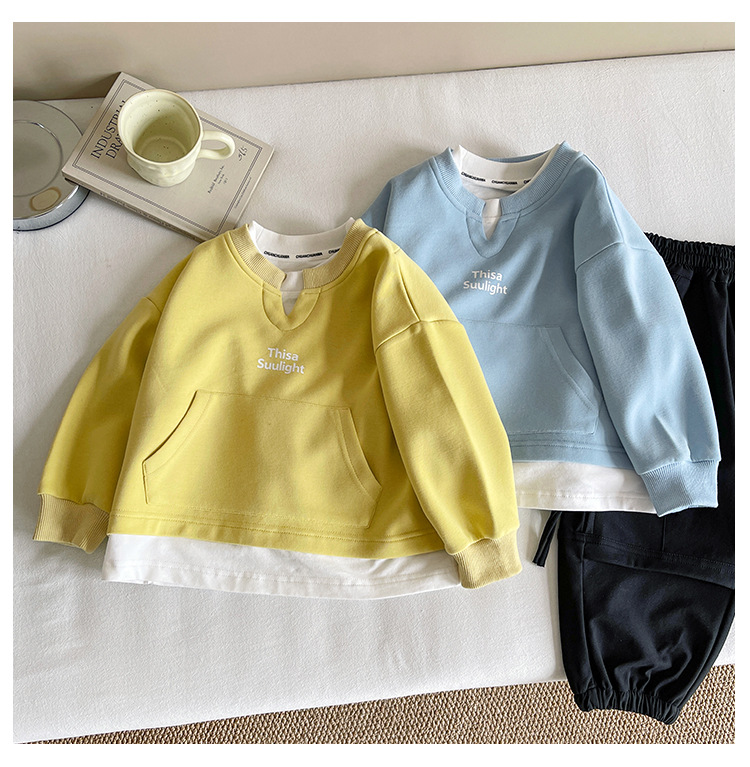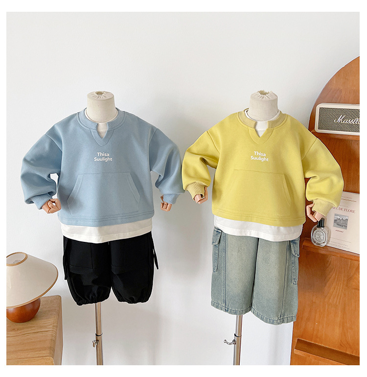 Nausicaa of the Valley 2025 가을 신작 아동복 아동 한국식 가짜 투피스 스플리싱 스웨트 셔츠 유행 소년 소녀 탑스토어 가기