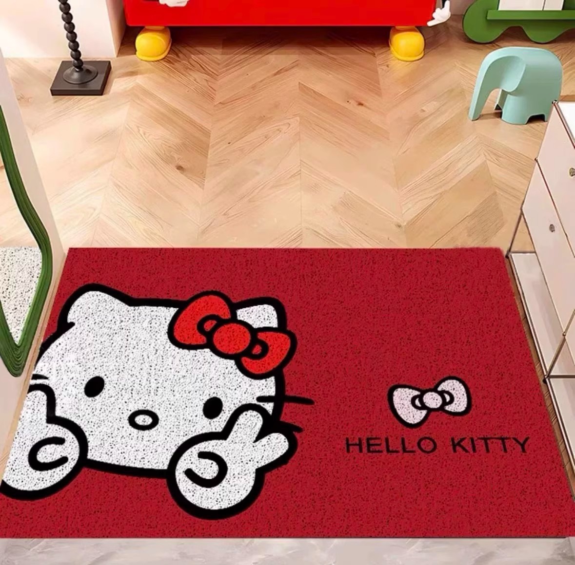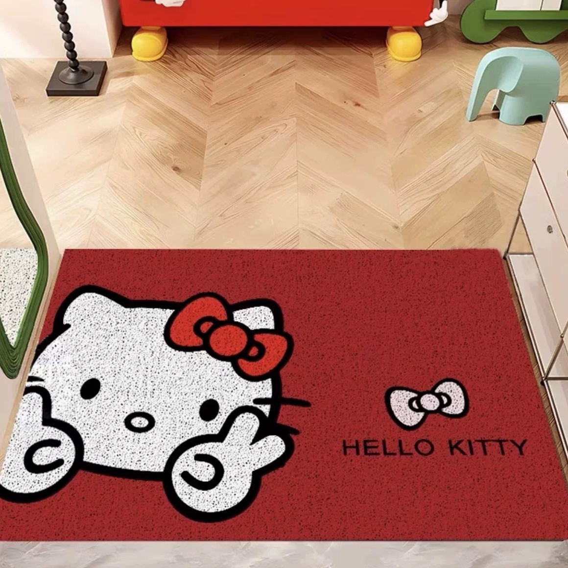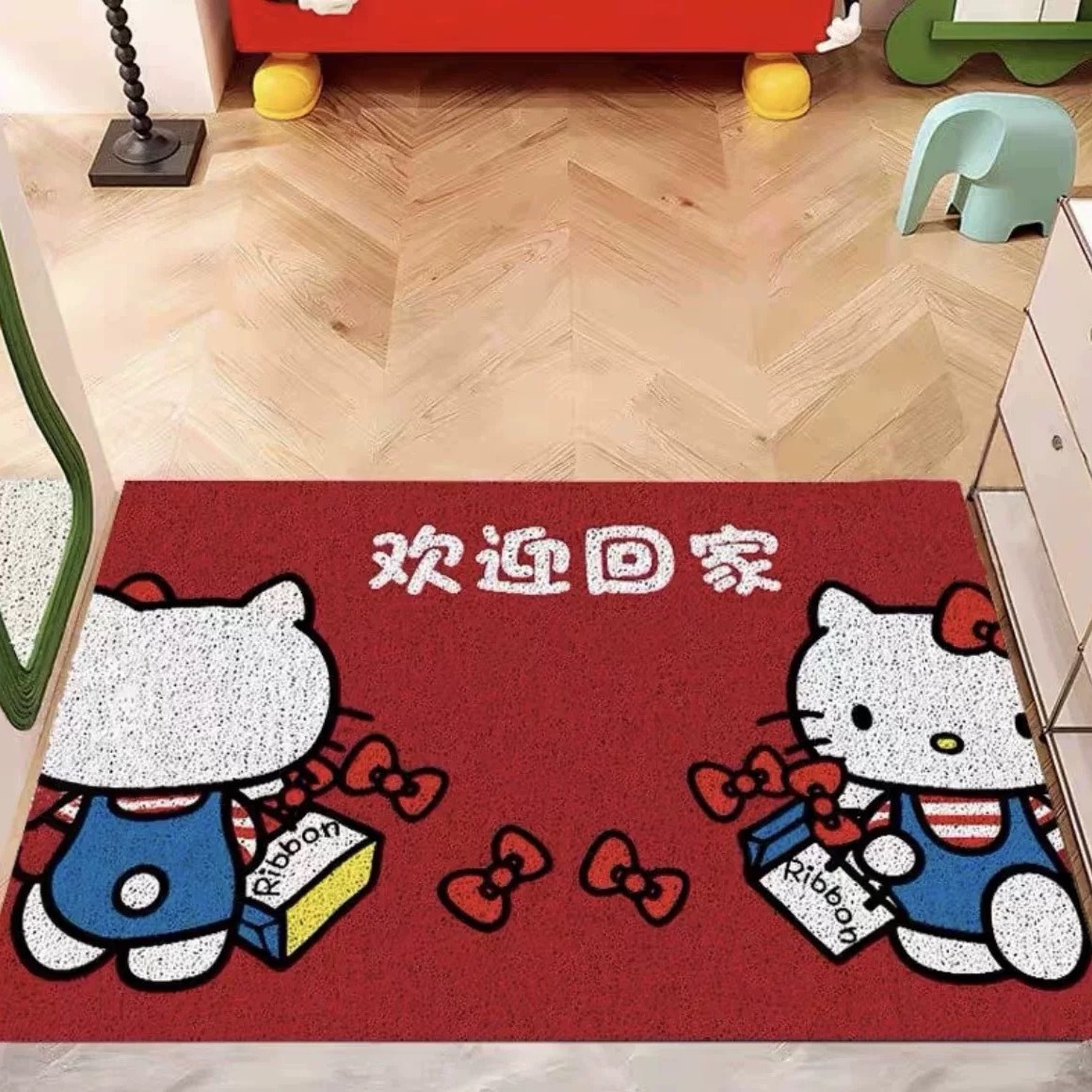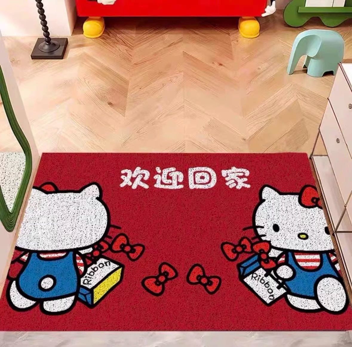 헬로키티 현관문 매트, 실크링, 내마모성, 먼지 방지 발 매트, 축제 레드 할로키티 바닥 매트스토어 가기