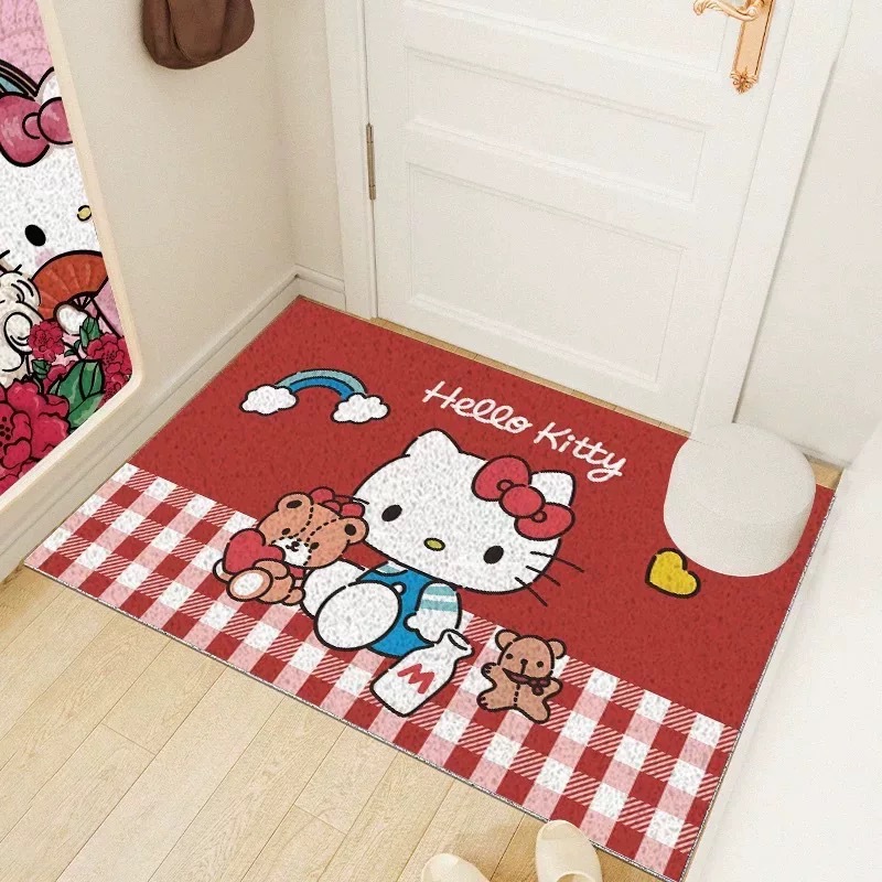 헬로키티 현관문 매트, 실크링, 내마모성, 먼지 방지 발 매트, 축제 레드 할로키티 바닥 매트