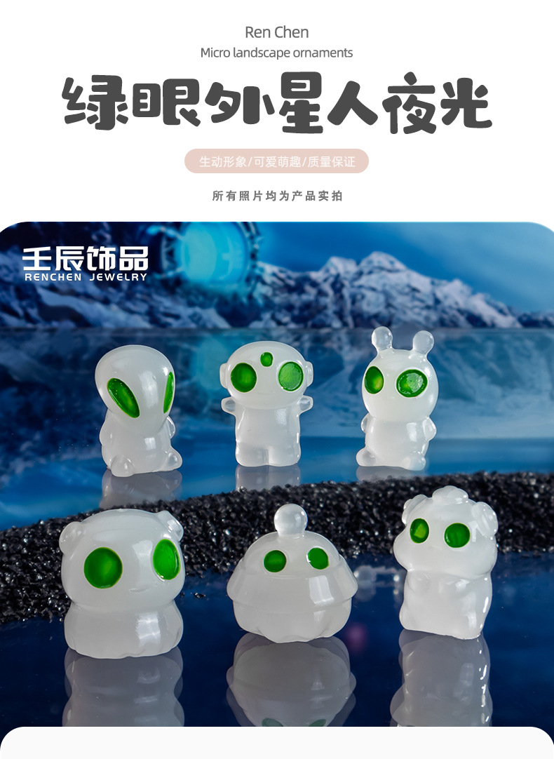 국경 간 신제품 빛나는 수지 녹색 눈 외계인 입체 만화 인형 데스크탑 작은 장식품 마이크로 풍경 장식스토어 가기