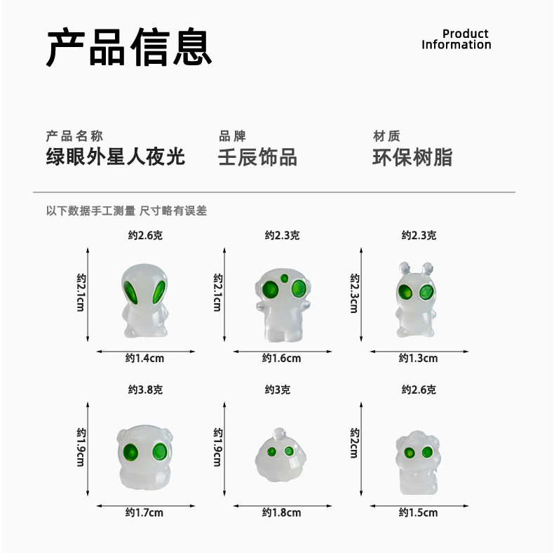 국경 간 신제품 빛나는 수지 녹색 눈 외계인 입체 만화 인형 데스크탑 작은 장식품 마이크로 풍경 장식