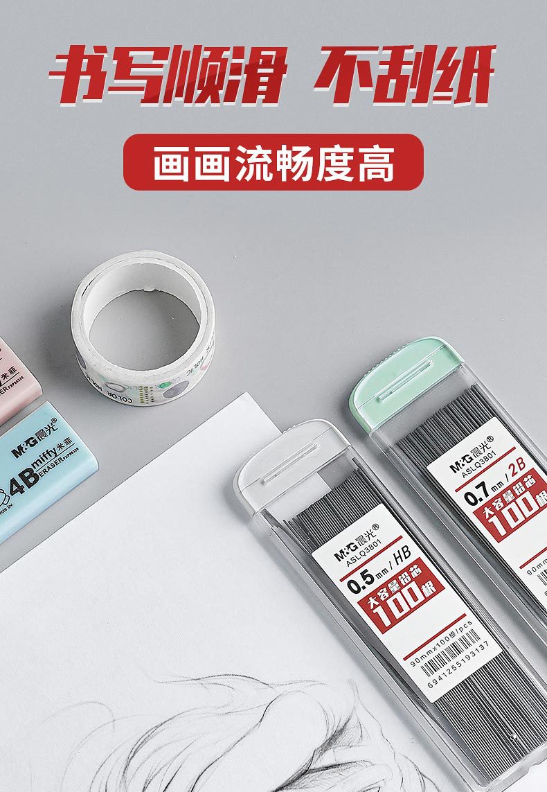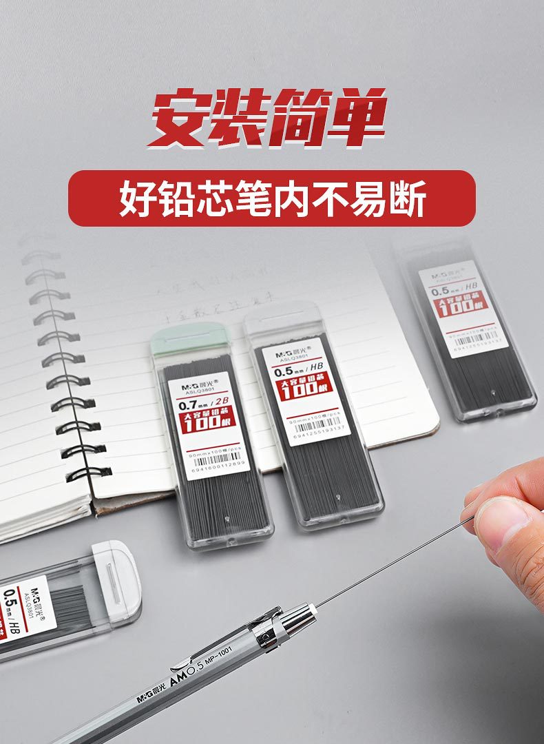 M&G 광자동연필 hb심 초등학생용 자동연필심 두께가 있는 연필심 교체심 쉽게 부러지지 않음스토어 가기