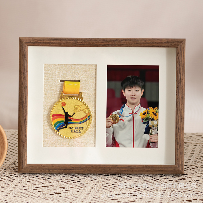 나무 메달 사진 프레임 보관 상자 마라톤 플래카드 장식 나무 액자 중공 명예 메달 테이블 유지