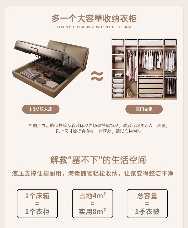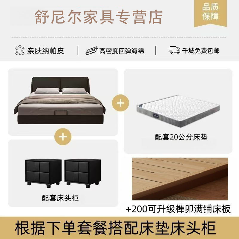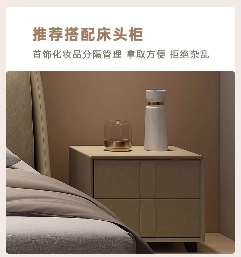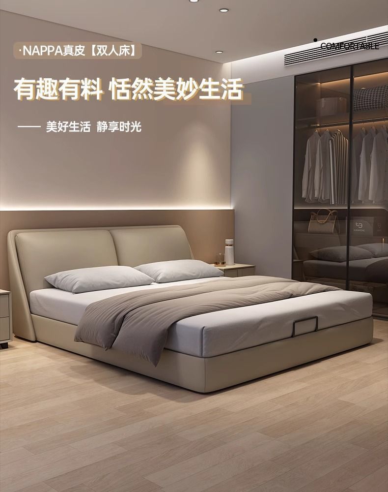 이탈리아 정품 가죽 미니멀리스트 하이 엔드 더블 침대 라이트 럭셔리 현대 작은 아파트 간단한 스토리지 웨딩 침대 더블 가죽 아트 침대스토어 가기